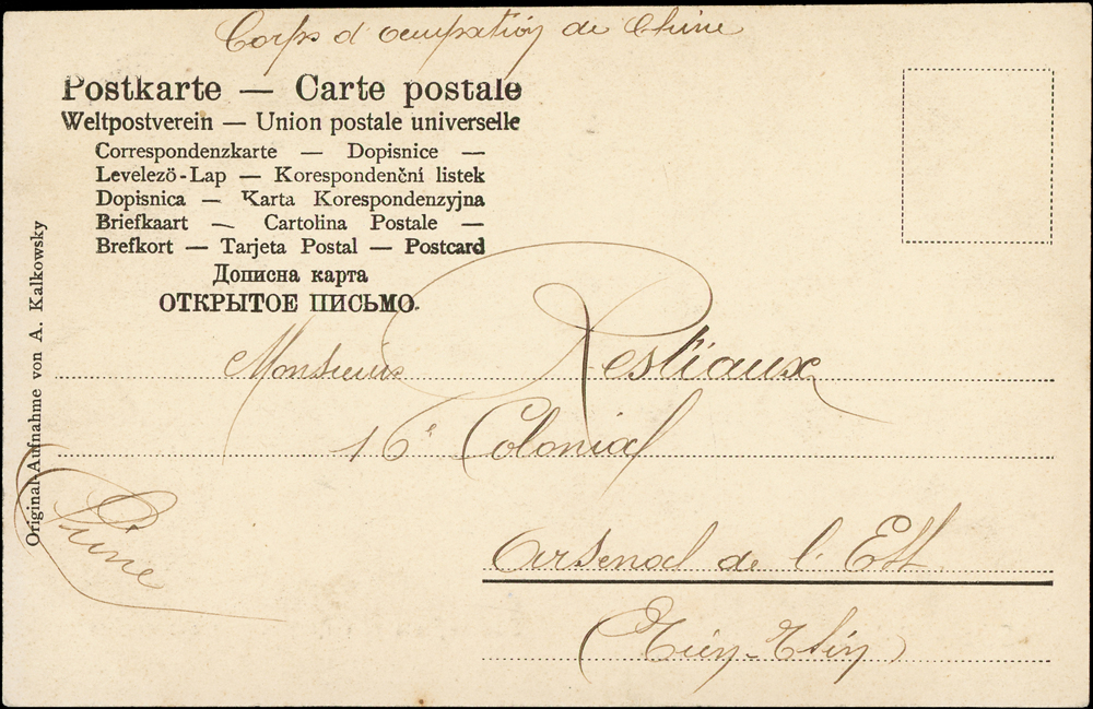 黑白片三片:(1)河内丁郎寺黑白片,格式面貼法屬安南婦女圖4分.農耕圖1分各1枚銷戳不清;(2)北京公使館街黑白片,圖案面貼法國客郵5C,銷北京1906.OCT.30戳,背蓋1906.11.12法國到戳;(3)山海關黑白片,圖案面貼法國客郵5C銷戳不清(Page 7)