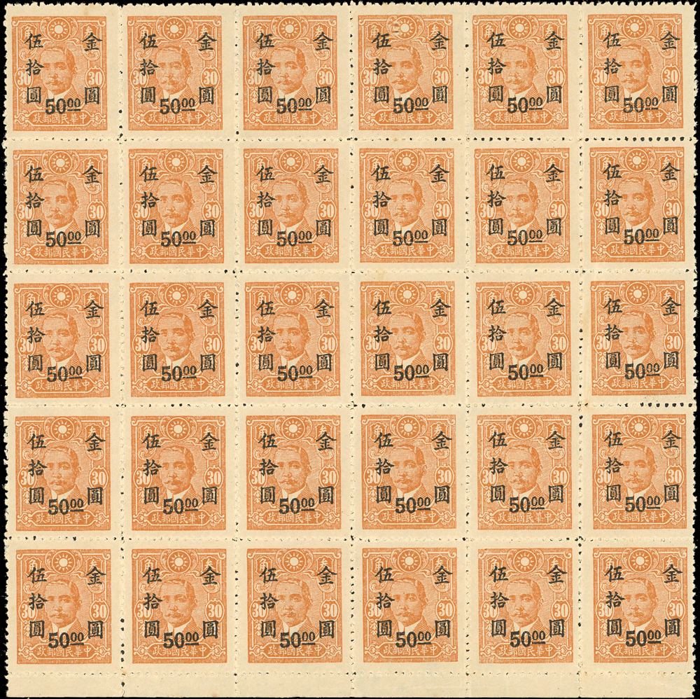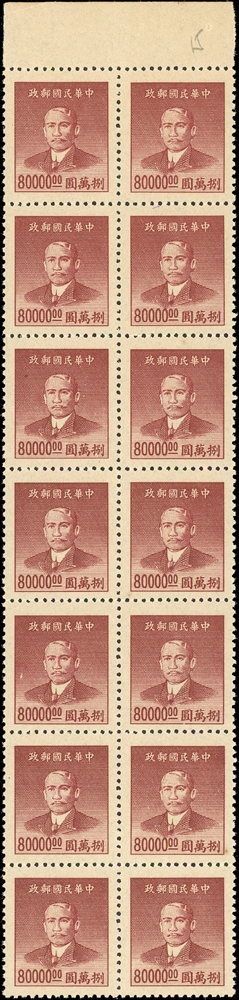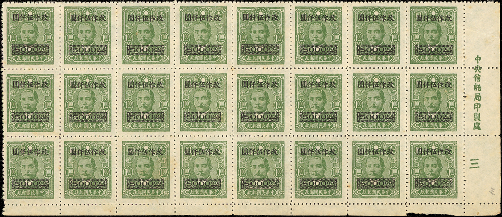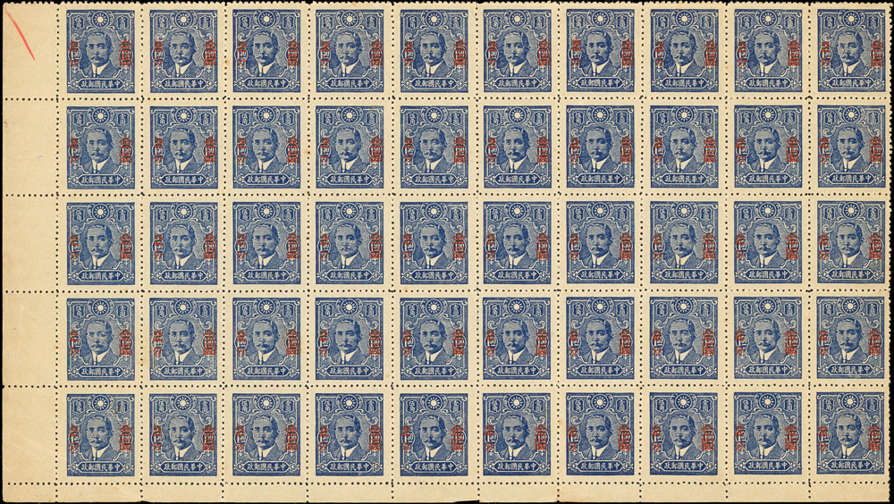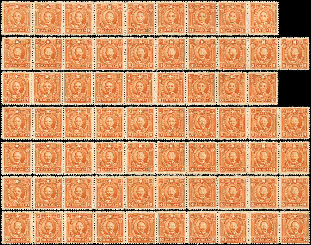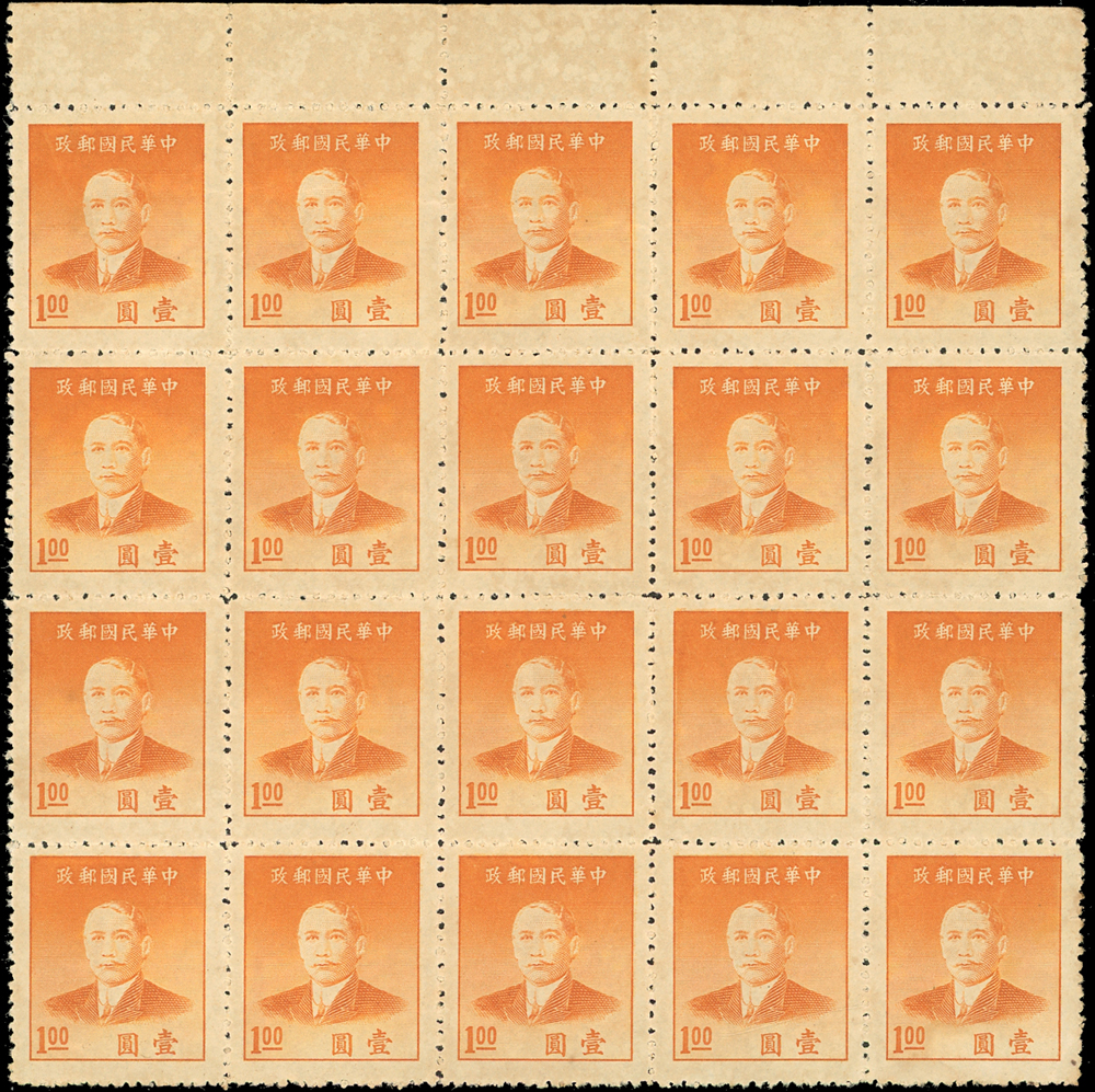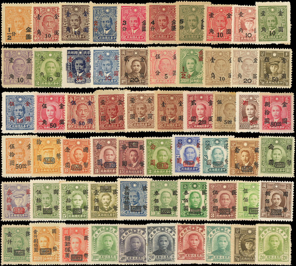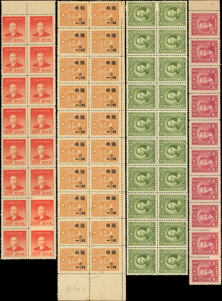 各版國父像先烈像不成套新票1767枚,部分為大方連,含:國父像烈士像改值金圓.國父像上海大東一版金圓.國父像重慶大東版.國父像改高額國幣.國父像北平中央二版限東北.北京版烈士像等;另中信一版欠資2元50方連新票1件,以上共1817枚,品像混合多重複,VF-F,歡迎至官網瀏覽全貌(Page 18)