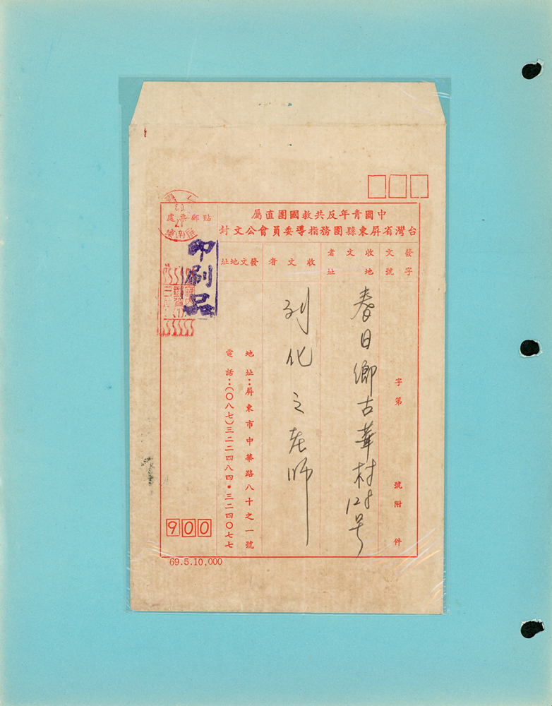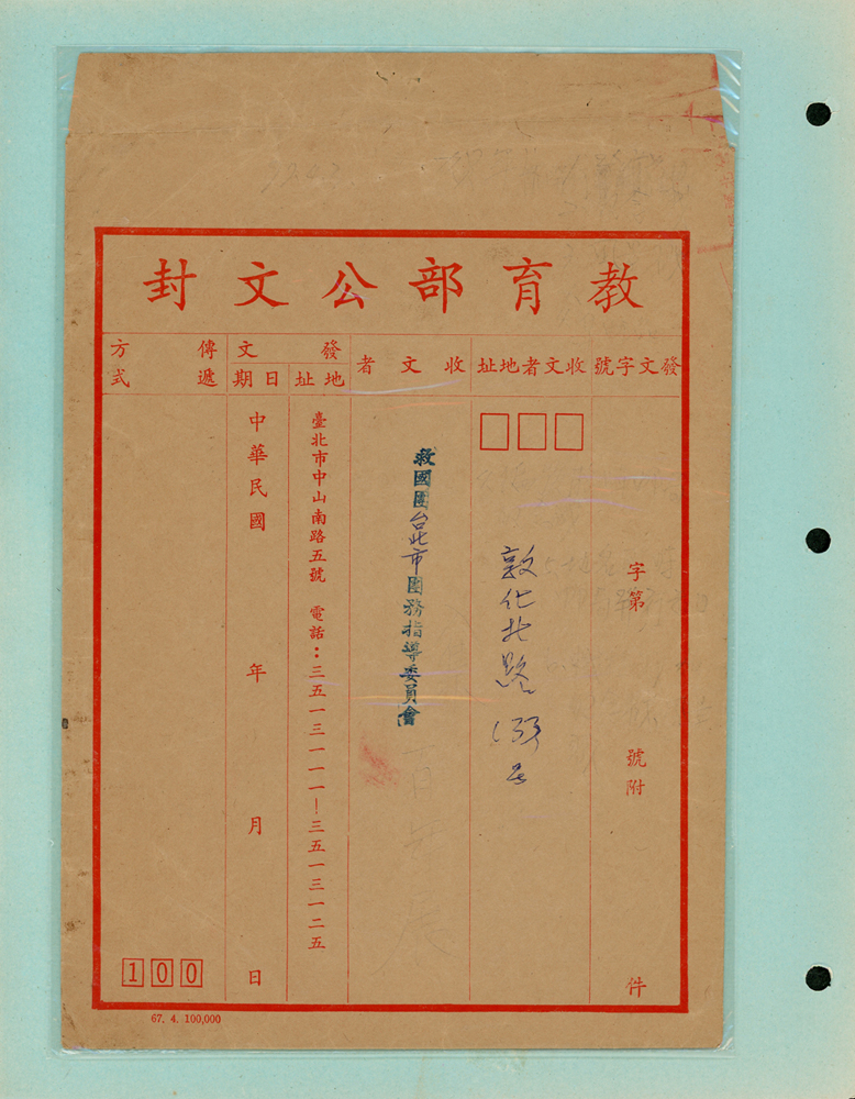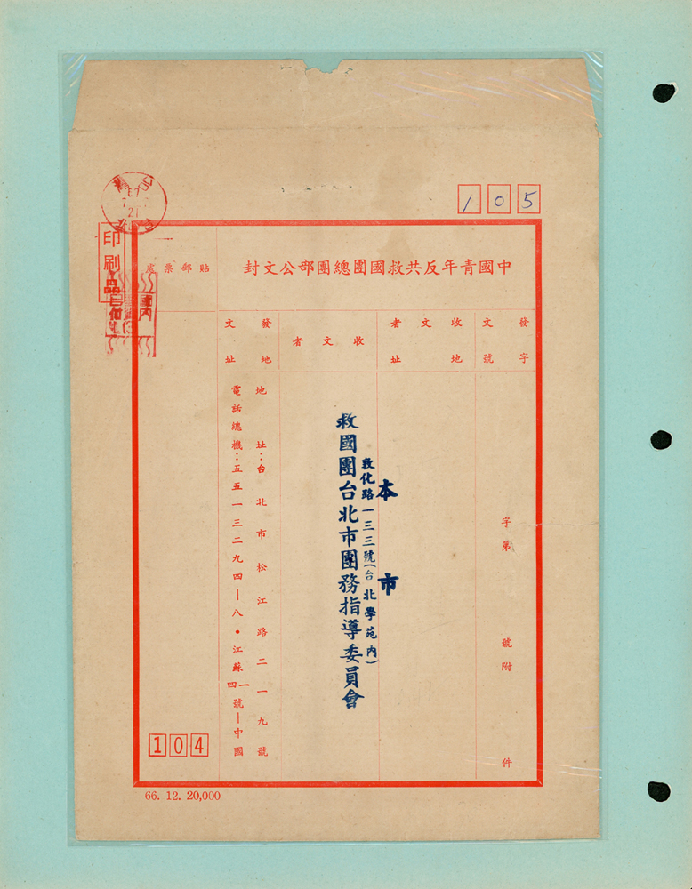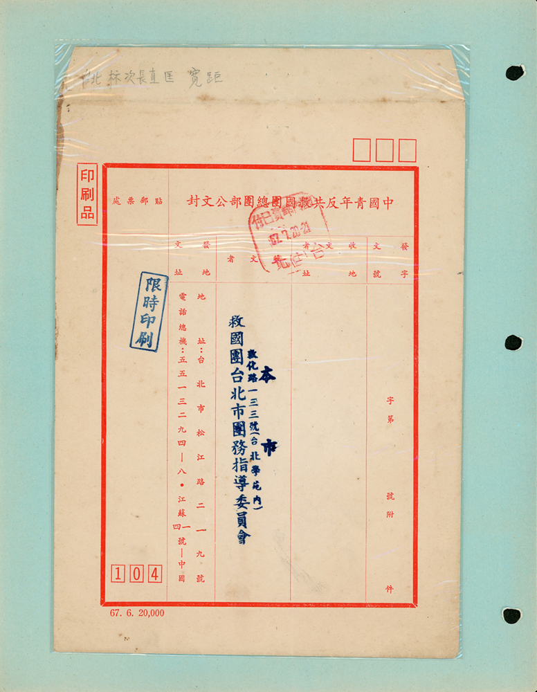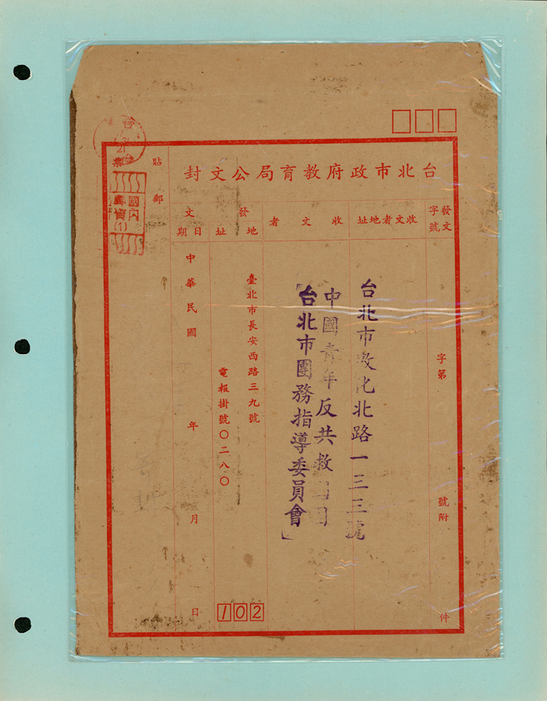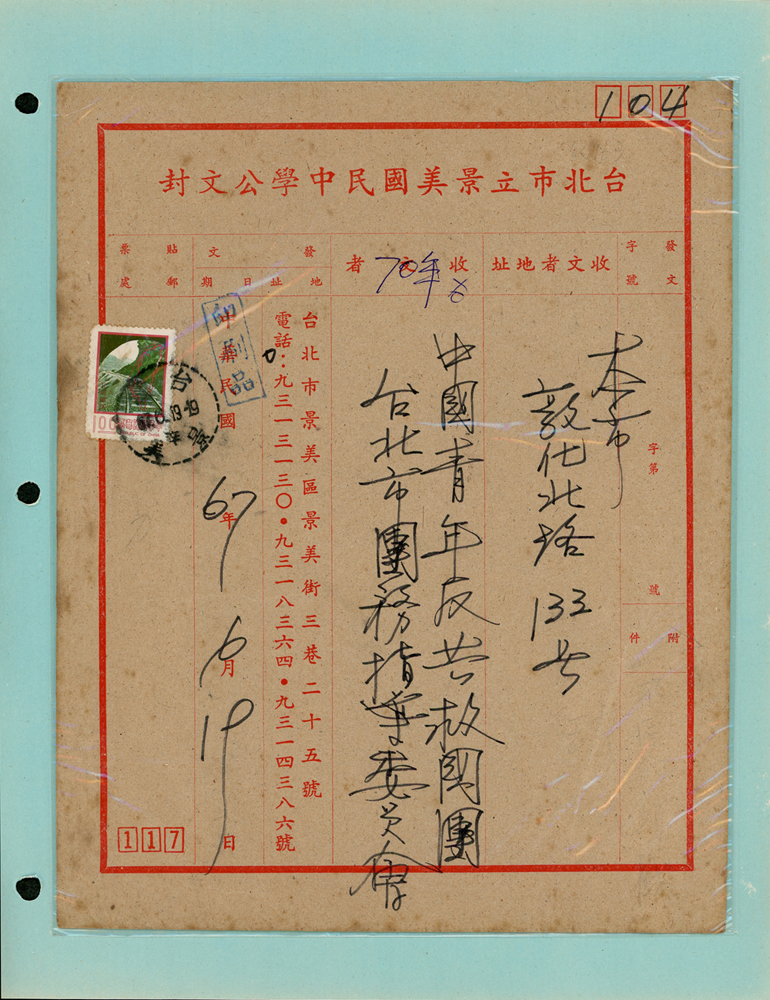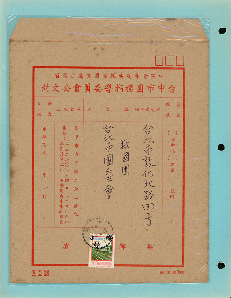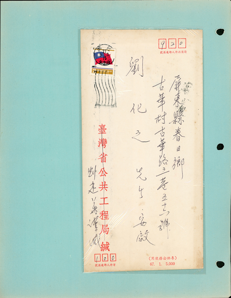 各式封.印刷品共二冊,包括:(1)各單位部門公文封及今日郵政月刊封共49封,其中45封為實寄,含:省政府.救國團.教育部.退輔會.景美國中等;(2)郵票發行中英文海報68張,包括有:十駿犬.食用菇類.春市圖.扇面古畫.古代錢幣.民間故事.古代銅器.體育.音樂.古代銅器.台灣鳥類.蔣夫人山水畫.國民健保.中國書法藝術.古代雕漆器.宋人嬰戲圖古畫等;總重約2.5公斤,歡迎至官網瀏覽全貌;林茂興舊藏