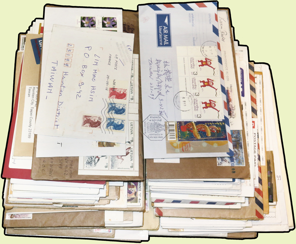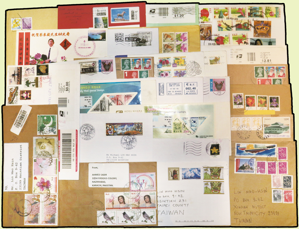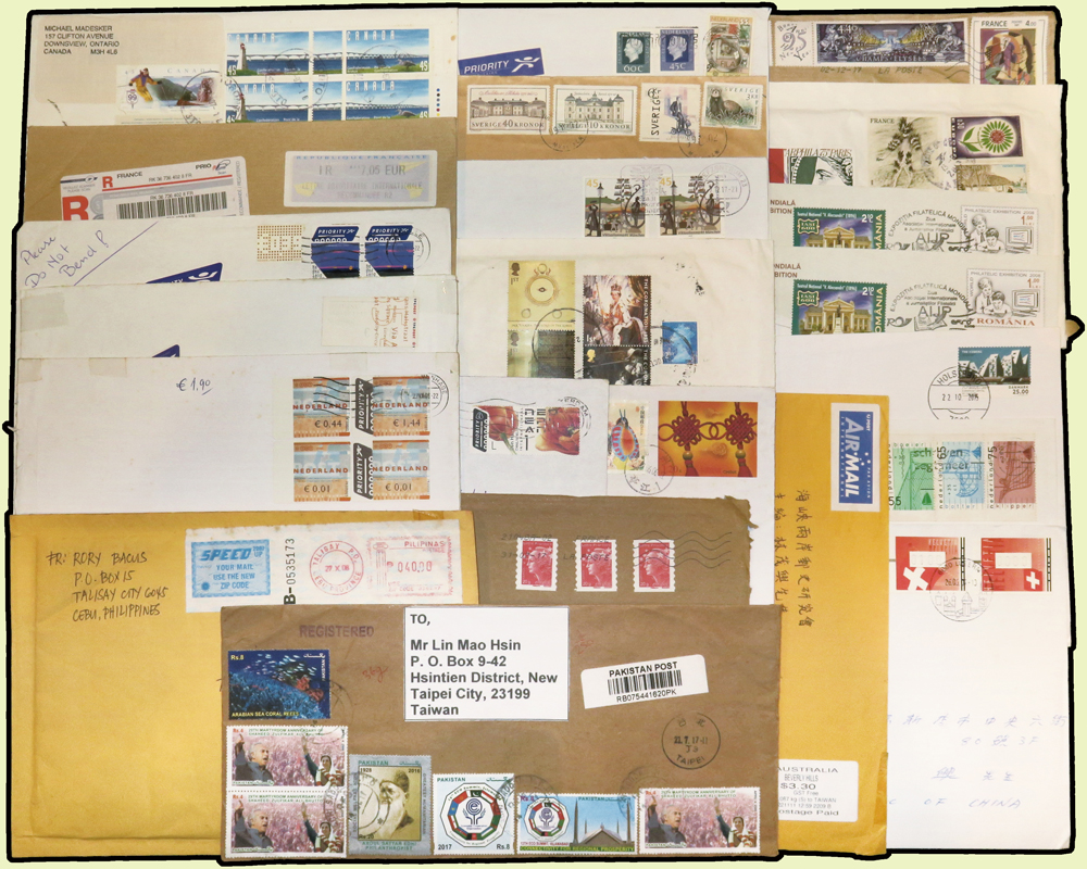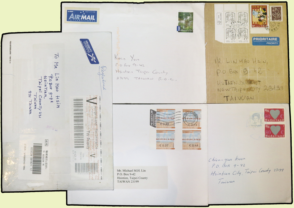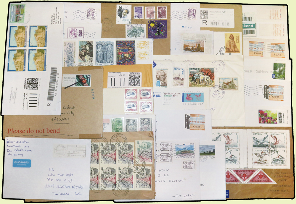 1976~2022年各國寄台灣實寄封共185封,貼票精彩,其中含寄總統府印刷品封4件,寄件國家包括有:日本.法國.美國.德國.澳洲.烏拉圭.捷克.瑞士.紐西蘭.西班牙.阿曼.以色列.加拿大.印尼.荷蘭.羅馬.義大利.巴基斯坦.丹麥.立陶宛等,歡迎至官網瀏覽全貌,收件人:林茂興(Page 55)