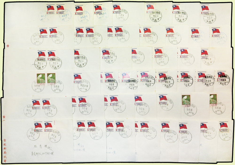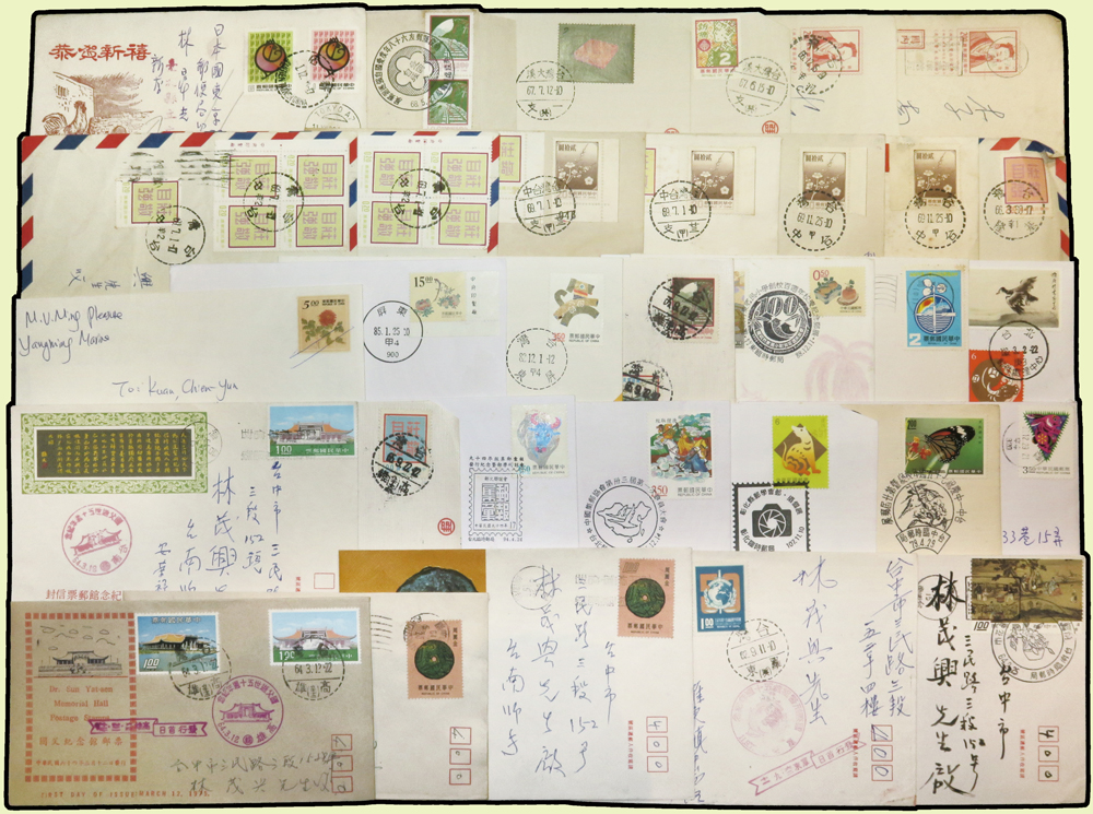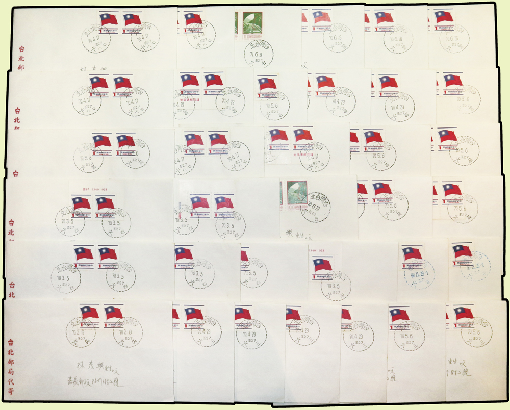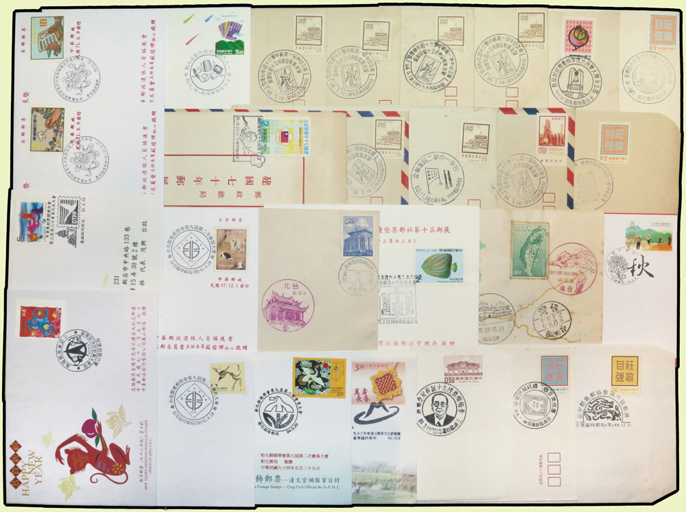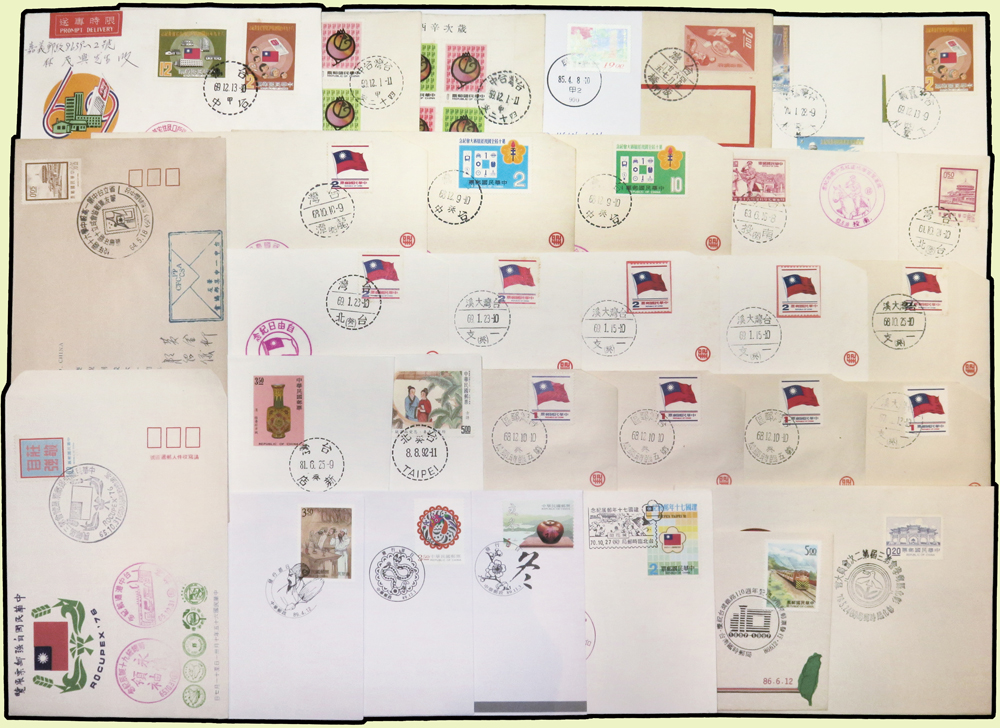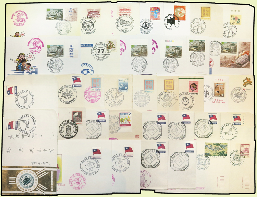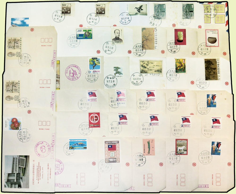 台灣1961~2021年各式封497件:(1)套票首日封61封(48封實寄),含:唐三彩.二輪雞.狗小全張.氣象衛星資料接收站落成.錄音郵件.春書.台灣山水.兒童畫(70年版).中國民間故事(69年版).第十屆國民儲蓄日.明仇英山水及其小全張.節約能源等,多重複,少數銷:三峽白雞(代).嘉義下寮村(代).竹東一亭;(2)銷紀戳或癸戳低值封169封,少數銷:花蓮大禹嶺(代).花蓮國慶(代).軍郵二局.台北四亭,部分重複;(3)實寄封267封,半數為白封貼九建或國旗票集郵品,多數銷:三峽雞白(代).澎湖一汽.台北一火~台北十七火.台北廿五火~台北廿七火.基隆廿火.基隆十九火.花蓮十八火等,多重複;總重約2公斤;歡迎至官網瀏覽全貌;林茂興舊藏
