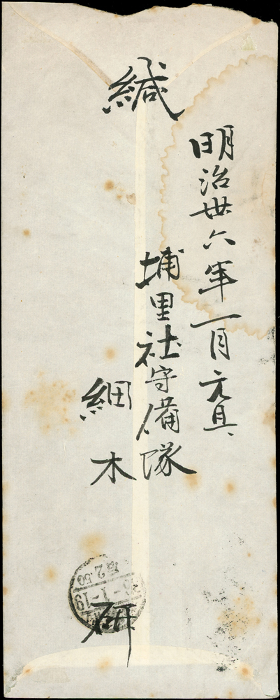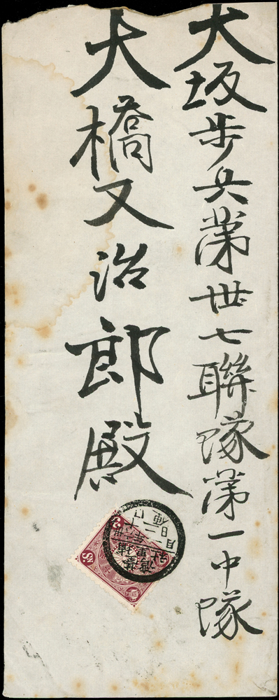 信封分類 大清郵政 1911年以前清代~國家郵政史(1082-1112)清代~商埠郵政史(1156-1158)在華客郵郵史(1168-1188)中華民國郵政 1912~1949年民國~郵政史(1424-1537)民國~名人封(1538-1547)民國~防盜(1548-1559)民國~首航封(1560-1570)民國~欠資封(1571-1574)民國~檢查封(1575-1599)民國~行動郵局/信櫃(1600-1613)兩岸通郵史(1933年-1989年)(1614-1632)民國~郵政匯兌(1633-1644)民國~民信局/僑批(1645-1651)民國~郵政明信片(1652-1659)民國~風景明信片(1660-1683)民國~國內及國際航空郵簡(1684-1703)日偽政權~郵政史(1714-1723)台灣 1888~2020年台灣~整批/整冊信封(3554-3583)日治時期~台灣郵史1895~1945(3601-3661)日治時期~台灣明信片(3662-3688)日治時期~台灣風景片(3689-3695)台灣老台幣時期~國父像火炬圖『限臺灣省用』明信片(3738-3739)台灣~老台幣時期郵政史1945~1949(3740-3815)台灣~自動化實寄封(4646-4647)台灣~新台幣時期郵政史(6001-6041)大陳島(6042)台灣~代辦所/欠資/首航(6043-6055)台灣~郵政匯兌(6056-6073)台灣~首日封(6074-6090)台灣~郵資封/郵政明信片(6091-6100)台灣~原圖卡(6101-6113)台灣~國內及國際航空郵簡(6114-6122)中國人民郵政 1949~2018年新中國~解放區郵史(6128-6140)新中國~郵政史(6277-6289)新中國~郵政匯兌/郵資封片(6290-6304)中國香港~郵政史(6314-6316)世界各國郵票日本郵政史(6327-6334)外國信封(A~Z)(6350-6365) 大清郵政 1911年以前 ↳清代~國家郵政史(1082-1112) ↳清代~商埠郵政史(1156-1158) ↳在華客郵郵史(1168-1188)中華民國郵政 1912~1949年 ↳民國~郵政史(1424-1537) ↳民國~名人封(1538-1547) ↳民國~防盜(1548-1559) ↳民國~首航封(1560-1570) ↳民國~欠資封(1571-1574) ↳民國~檢查封(1575-1599) ↳民國~行動郵局/信櫃(1600-1613) ↳兩岸通郵史(1933年-1989年)(1614-1632) ↳民國~郵政匯兌(1633-1644) ↳民國~民信局/僑批(1645-1651) ↳民國~郵政明信片(1652-1659) ↳民國~風景明信片(1660-1683) ↳民國~國內及國際航空郵簡(1684-1703) ↳日偽政權~郵政史(1714-1723)台灣 1888~2020年 ↳台灣~整批/整冊信封(3554-3583) ↳日治時期~台灣郵史1895~1945(3601-3661) ↳日治時期~台灣明信片(3662-3688) ↳日治時期~台灣風景片(3689-3695) ↳台灣老台幣時期~國父像火炬圖『限臺灣省用』明信片(3738-3739) ↳台灣~老台幣時期郵政史1945~1949(3740-3815) ↳台灣~自動化實寄封(4646-4647) ↳台灣~新台幣時期郵政史(6001-6041) ↳大陳島(6042) ↳台灣~代辦所/欠資/首航(6043-6055) ↳台灣~郵政匯兌(6056-6073) ↳台灣~首日封(6074-6090) ↳台灣~郵資封/郵政明信片(6091-6100) ↳台灣~原圖卡(6101-6113) ↳台灣~國內及國際航空郵簡(6114-6122)中國人民郵政 1949~2018年 ↳新中國~解放區郵史(6128-6140) ↳新中國~郵政史(6277-6289) ↳新中國~郵政匯兌/郵資封片(6290-6304) ↳中國香港~郵政史(6314-6316)世界各國郵票 ↳日本郵政史(6327-6334) ↳外國信封(A~Z)(6350-6365) 點大圖放大展示,點小圖切換 1 1903年埔里社守備隊寄日本封,貼日郵菊3錢1枚,銷台灣埔里社三六年一月十二日丸一戳,日本大阪高麗橋38-1-19丸二到戳(Page 57) 結標時間 2025-12-16 10:40:00 拍品編號:3621 起拍價:NT$5000 當前價:NT$5000 自動出價 直接出價 出價 系統將按出價級數,依序為您比(出)價至上限金額 提醒您:直接出價後不可將金額改低,只能改高,蟠龍無法降低您的出價,最高出價者無法取消出價 (查看出價說明) 得標說明:需按得標價另加10%佣金 當前加價幅度:NT$0元 (查看加價級數表) 回上頁 線上出價記錄 線上 0 人次,書面 0 人次 競價客戶 所在地 出價時間 出價金額 出價方式 問與答 目前尚無提問 我要提問 請先登入會員