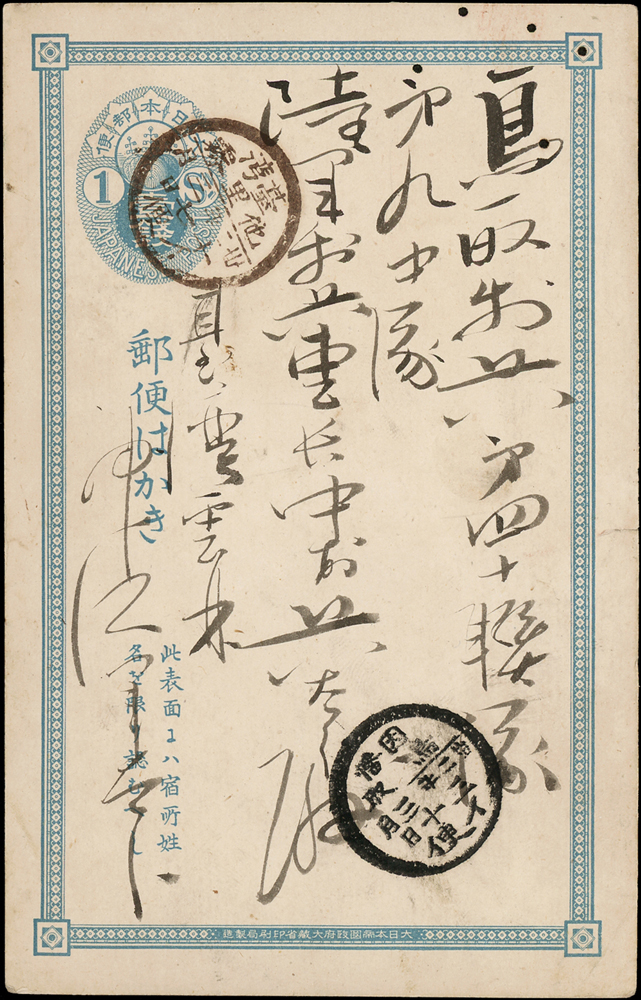 信封分類 大清郵政 1911年以前清代~國家郵政史(1082-1112)清代~商埠郵政史(1156-1158)在華客郵郵史(1168-1188)中華民國郵政 1912~1949年民國~郵政史(1424-1537)民國~名人封(1538-1547)民國~防盜(1548-1559)民國~首航封(1560-1570)民國~欠資封(1571-1574)民國~檢查封(1575-1599)民國~行動郵局/信櫃(1600-1613)兩岸通郵史(1933年-1989年)(1614-1632)民國~郵政匯兌(1633-1644)民國~民信局/僑批(1645-1651)民國~郵政明信片(1652-1659)民國~風景明信片(1660-1683)民國~國內及國際航空郵簡(1684-1703)日偽政權~郵政史(1714-1723)台灣 1888~2020年台灣~整批/整冊信封(3554-3583)日治時期~台灣郵史1895~1945(3601-3661)日治時期~台灣明信片(3662-3688)日治時期~台灣風景片(3689-3695)台灣老台幣時期~國父像火炬圖『限臺灣省用』明信片(3738-3739)台灣~老台幣時期郵政史1945~1949(3740-3815)台灣~自動化實寄封(4646-4647)台灣~新台幣時期郵政史(6001-6041)大陳島(6042)台灣~代辦所/欠資/首航(6043-6055)台灣~郵政匯兌(6056-6073)台灣~首日封(6074-6090)台灣~郵資封/郵政明信片(6091-6100)台灣~原圖卡(6101-6113)台灣~國內及國際航空郵簡(6114-6122)中國人民郵政 1949~2018年新中國~解放區郵史(6128-6140)新中國~郵政史(6277-6289)新中國~郵政匯兌/郵資封片(6290-6304)中國香港~郵政史(6314-6316)世界各國郵票日本郵政史(6327-6334)外國信封(A~Z)(6350-6365) 大清郵政 1911年以前 ↳清代~國家郵政史(1082-1112) ↳清代~商埠郵政史(1156-1158) ↳在華客郵郵史(1168-1188)中華民國郵政 1912~1949年 ↳民國~郵政史(1424-1537) ↳民國~名人封(1538-1547) ↳民國~防盜(1548-1559) ↳民國~首航封(1560-1570) ↳民國~欠資封(1571-1574) ↳民國~檢查封(1575-1599) ↳民國~行動郵局/信櫃(1600-1613) ↳兩岸通郵史(1933年-1989年)(1614-1632) ↳民國~郵政匯兌(1633-1644) ↳民國~民信局/僑批(1645-1651) ↳民國~郵政明信片(1652-1659) ↳民國~風景明信片(1660-1683) ↳民國~國內及國際航空郵簡(1684-1703) ↳日偽政權~郵政史(1714-1723)台灣 1888~2020年 ↳台灣~整批/整冊信封(3554-3583) ↳日治時期~台灣郵史1895~1945(3601-3661) ↳日治時期~台灣明信片(3662-3688) ↳日治時期~台灣風景片(3689-3695) ↳台灣老台幣時期~國父像火炬圖『限臺灣省用』明信片(3738-3739) ↳台灣~老台幣時期郵政史1945~1949(3740-3815) ↳台灣~自動化實寄封(4646-4647) ↳台灣~新台幣時期郵政史(6001-6041) ↳大陳島(6042) ↳台灣~代辦所/欠資/首航(6043-6055) ↳台灣~郵政匯兌(6056-6073) ↳台灣~首日封(6074-6090) ↳台灣~郵資封/郵政明信片(6091-6100) ↳台灣~原圖卡(6101-6113) ↳台灣~國內及國際航空郵簡(6114-6122)中國人民郵政 1949~2018年 ↳新中國~解放區郵史(6128-6140) ↳新中國~郵政史(6277-6289) ↳新中國~郵政匯兌/郵資封片(6290-6304) ↳中國香港~郵政史(6314-6316)世界各國郵票 ↳日本郵政史(6327-6334) ↳外國信封(A~Z)(6350-6365) 點大圖放大展示,點小圖切換 3 1899年日本小判1錢郵資片,銷臺灣他里霧三二年三月十七日丸一戳,日本因幡鳥取三二年三月三十日丸一到戳(Page 59) 結標時間 2025-12-16 10:54:40 拍品編號:3665 起拍價:NT$6000 當前價:NT$6000 自動出價 直接出價 出價 系統將按出價級數,依序為您比(出)價至上限金額 提醒您:直接出價後不可將金額改低,只能改高,蟠龍無法降低您的出價,最高出價者無法取消出價 (查看出價說明) 得標說明:需按得標價另加10%佣金 當前加價幅度:NT$0元 (查看加價級數表) 回上頁 線上出價記錄 線上 0 人次,書面 0 人次 競價客戶 所在地 出價時間 出價金額 出價方式 問與答 目前尚無提問 我要提問 請先登入會員