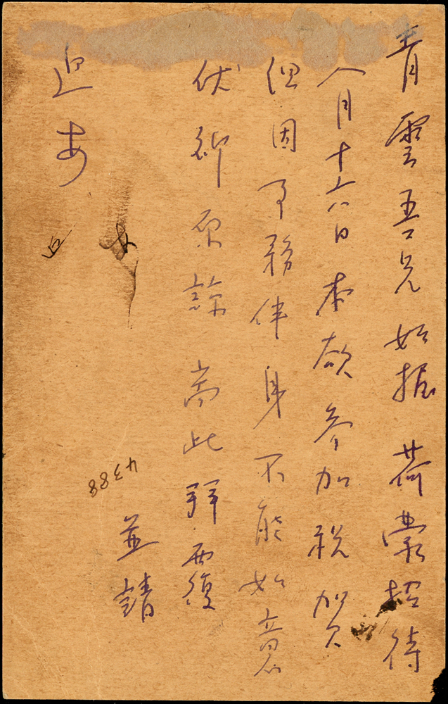國父像火炬圖『限臺灣省用』1.5元明信片,加貼老台幣票2枚,共計郵資4元,銷嘉義(丁)15.8.36漢式小圓日戳,台南同日到戳,符合資費肆圓時期(1947.7.16-9.30);國父像火炬片實寄目前僅發現48片,符合郵資肆圓時期僅7件,此為記錄中之一,十分珍罕;請參閱『台灣郵區郵政明信片(1947-55)』,2022年郵文聯誼會出版(Page 63)