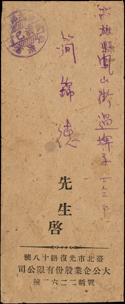 信封分類 大清郵政 1911年以前清代~國家郵政史(1082-1112)清代~商埠郵政史(1156-1158)在華客郵郵史(1168-1188)中華民國郵政 1912~1949年民國~郵政史(1424-1537)民國~名人封(1538-1547)民國~防盜(1548-1559)民國~首航封(1560-1570)民國~欠資封(1571-1574)民國~檢查封(1575-1599)民國~行動郵局/信櫃(1600-1613)兩岸通郵史(1933年-1989年)(1614-1632)民國~郵政匯兌(1633-1644)民國~民信局/僑批(1645-1651)民國~郵政明信片(1652-1659)民國~風景明信片(1660-1683)民國~國內及國際航空郵簡(1684-1703)日偽政權~郵政史(1714-1723)台灣 1888~2020年台灣~整批/整冊信封(3554-3583)日治時期~台灣郵史1895~1945(3601-3661)日治時期~台灣明信片(3662-3688)日治時期~台灣風景片(3689-3695)台灣老台幣時期~國父像火炬圖『限臺灣省用』明信片(3738-3739)台灣~老台幣時期郵政史1945~1949(3740-3815)台灣~自動化實寄封(4646-4647)台灣~新台幣時期郵政史(6001-6041)大陳島(6042)台灣~代辦所/欠資/首航(6043-6055)台灣~郵政匯兌(6056-6073)台灣~首日封(6074-6090)台灣~郵資封/郵政明信片(6091-6100)台灣~原圖卡(6101-6113)台灣~國內及國際航空郵簡(6114-6122)中國人民郵政 1949~2018年新中國~解放區郵史(6128-6140)新中國~郵政史(6277-6289)新中國~郵政匯兌/郵資封片(6290-6304)中國香港~郵政史(6314-6316)世界各國郵票日本郵政史(6327-6334)外國信封(A~Z)(6350-6365) 大清郵政 1911年以前 ↳清代~國家郵政史(1082-1112) ↳清代~商埠郵政史(1156-1158) ↳在華客郵郵史(1168-1188)中華民國郵政 1912~1949年 ↳民國~郵政史(1424-1537) ↳民國~名人封(1538-1547) ↳民國~防盜(1548-1559) ↳民國~首航封(1560-1570) ↳民國~欠資封(1571-1574) ↳民國~檢查封(1575-1599) ↳民國~行動郵局/信櫃(1600-1613) ↳兩岸通郵史(1933年-1989年)(1614-1632) ↳民國~郵政匯兌(1633-1644) ↳民國~民信局/僑批(1645-1651) ↳民國~郵政明信片(1652-1659) ↳民國~風景明信片(1660-1683) ↳民國~國內及國際航空郵簡(1684-1703) ↳日偽政權~郵政史(1714-1723)台灣 1888~2020年 ↳台灣~整批/整冊信封(3554-3583) ↳日治時期~台灣郵史1895~1945(3601-3661) ↳日治時期~台灣明信片(3662-3688) ↳日治時期~台灣風景片(3689-3695) ↳台灣老台幣時期~國父像火炬圖『限臺灣省用』明信片(3738-3739) ↳台灣~老台幣時期郵政史1945~1949(3740-3815) ↳台灣~自動化實寄封(4646-4647) ↳台灣~新台幣時期郵政史(6001-6041) ↳大陳島(6042) ↳台灣~代辦所/欠資/首航(6043-6055) ↳台灣~郵政匯兌(6056-6073) ↳台灣~首日封(6074-6090) ↳台灣~郵資封/郵政明信片(6091-6100) ↳台灣~原圖卡(6101-6113) ↳台灣~國內及國際航空郵簡(6114-6122)中國人民郵政 1949~2018年 ↳新中國~解放區郵史(6128-6140) ↳新中國~郵政史(6277-6289) ↳新中國~郵政匯兌/郵資封片(6290-6304) ↳中國香港~郵政史(6314-6316)世界各國郵票 ↳日本郵政史(6327-6334) ↳外國信封(A~Z)(6350-6365) 點大圖放大展示,點小圖切換 1 台北寄高雄封,銷藍色『台灣省/台北郵局/郵資已付』雙圈戳;民國35年9月,此型郵資已付戳已由紫色轉用藍色墨(Page 64) 結標時間 2025-12-16 11:22:20 拍品編號:3748 起拍價:NT$1000 當前價:NT$1000 自動出價 直接出價 出價 系統將按出價級數,依序為您比(出)價至上限金額 提醒您:直接出價後不可將金額改低,只能改高,蟠龍無法降低您的出價,最高出價者無法取消出價 (查看出價說明) 得標說明:需按得標價另加10%佣金 當前加價幅度:NT$0元 (查看加價級數表) 回上頁 線上出價記錄 線上 0 人次,書面 0 人次 競價客戶 所在地 出價時間 出價金額 出價方式 問與答 目前尚無提問 我要提問 請先登入會員