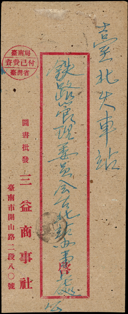 老台幣第3期印刷品封(35.11.1-36.6.30):1946年台南寄台北封,背貼國父像上海大東一版50錢3枚,銷國民大會紀念/台灣台南/卅五年十一月十二日紀念戳,台北櫛型到戳不清,加貼無法投遞貼條(Page 64)