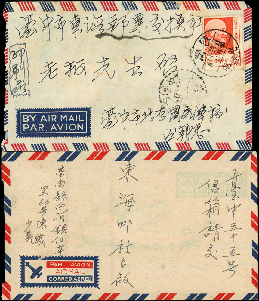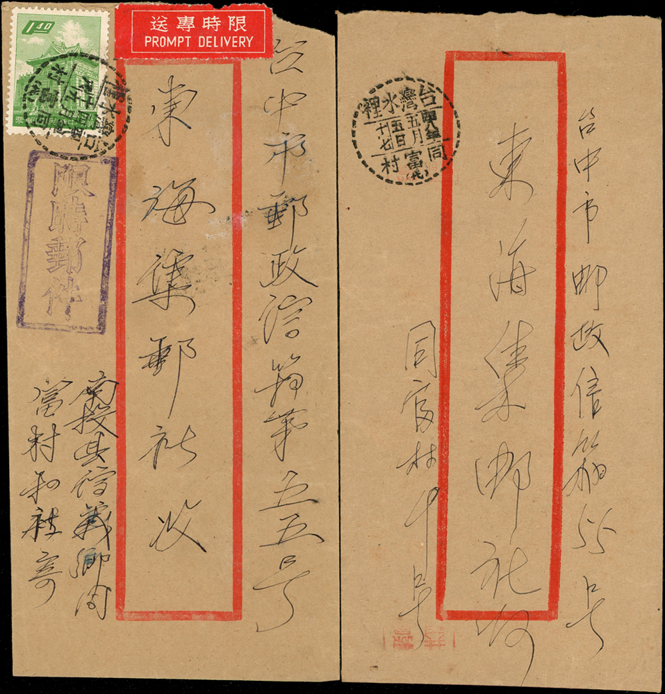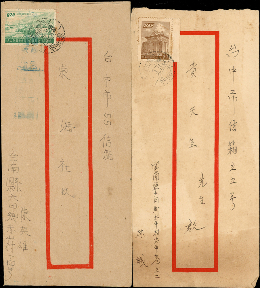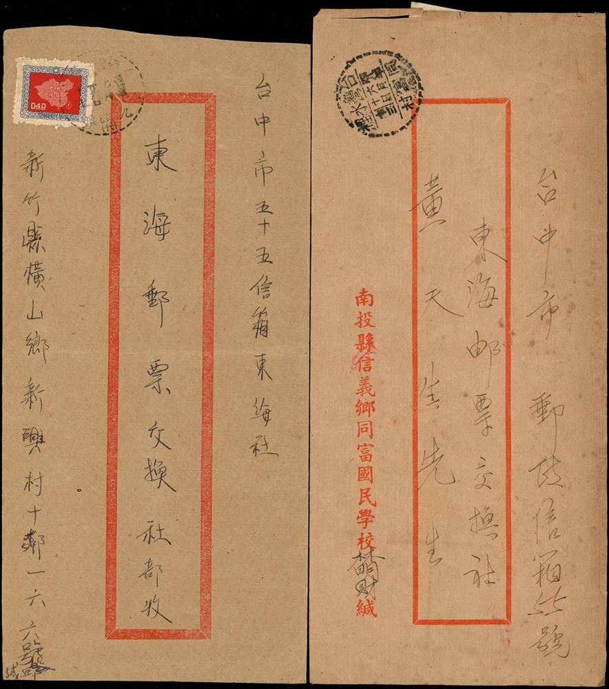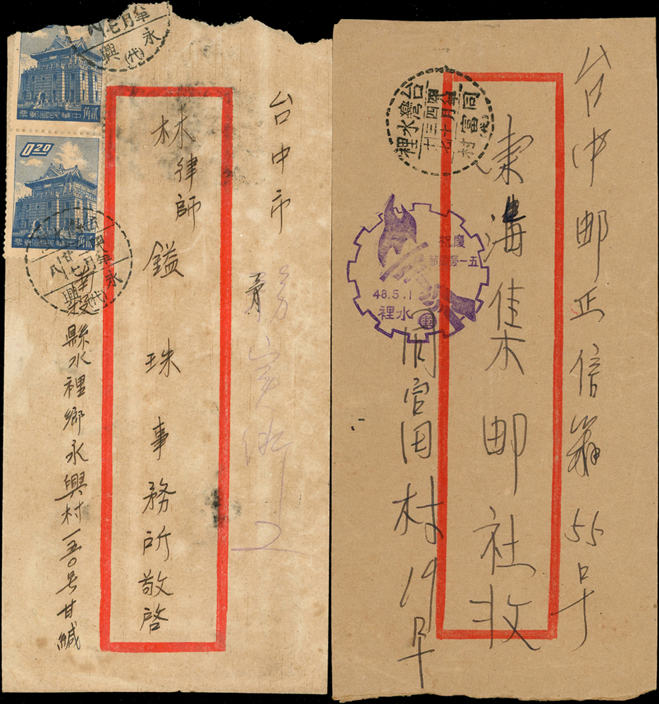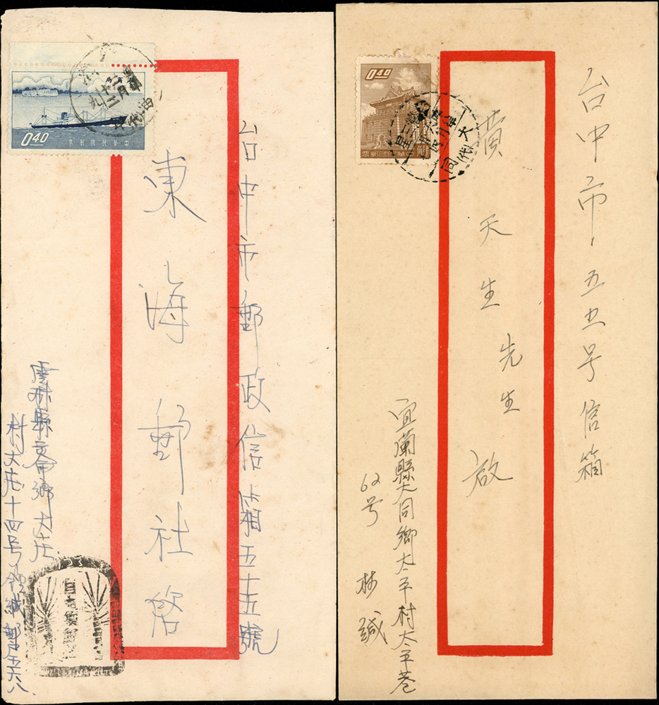 1957~1959年國內實寄封26封,均銷好戳,含:三星大同(代).水裡同富村(代).沙鹿龍西(代).名間新街(代).隆田嘉南(代).埔里萬大(代).富源村(代).竹南造橋(代).白河仙草埔(代).北屯(代).水里永興(代).板橋頂埔村(代).九曲堂水寮(代).大同路(代).油平(代).魚池日月潭(代).嘉義(代八).九曲堂水寮(代).三星大同(代).軍郵二所等,部分重複(Page 121)
