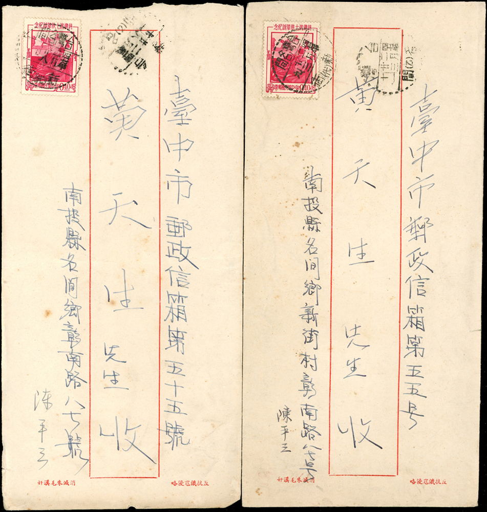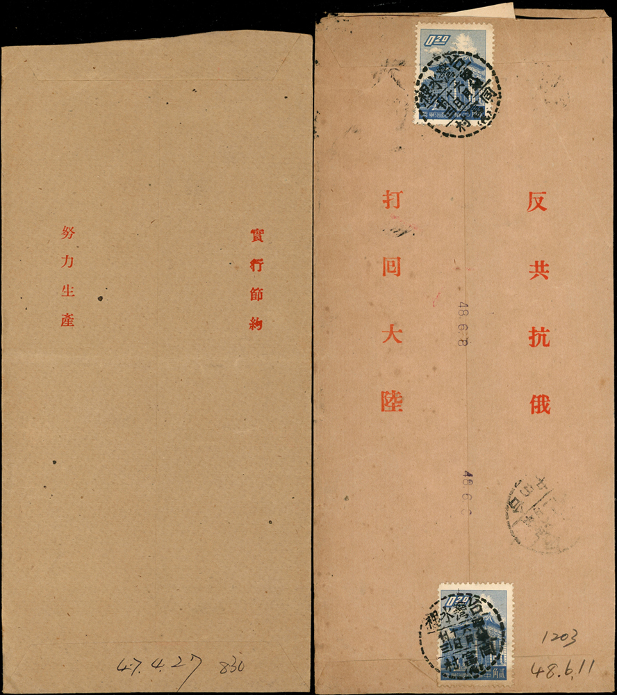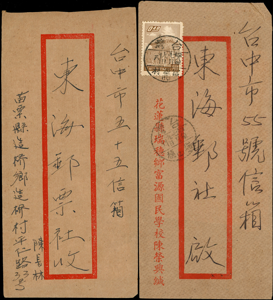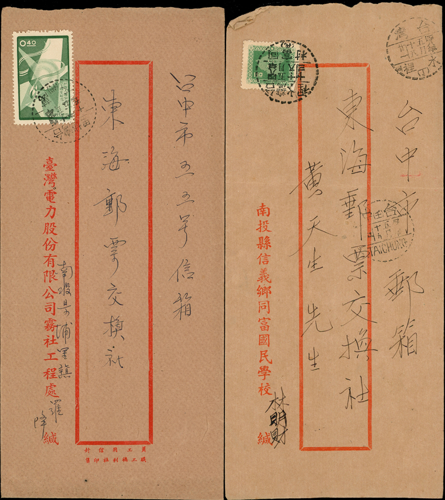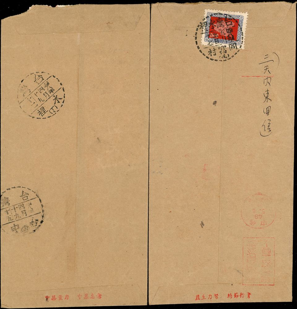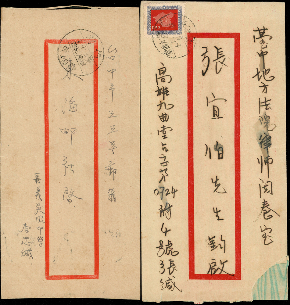 1957~1959年國內實寄封26封,均銷好戳,含:三星大同(代).水裡同富村(代).沙鹿龍西(代).名間新街(代).隆田嘉南(代).埔里萬大(代).富源村(代).竹南造橋(代).白河仙草埔(代).北屯(代).水里永興(代).板橋頂埔村(代).九曲堂水寮(代).大同路(代).油平(代).魚池日月潭(代).嘉義(代八).九曲堂水寮(代).三星大同(代).軍郵二所等,部分重複(Page 121)
