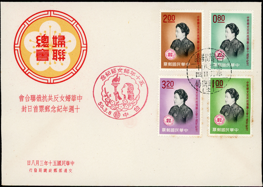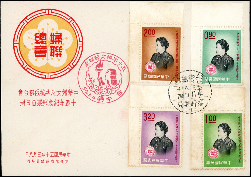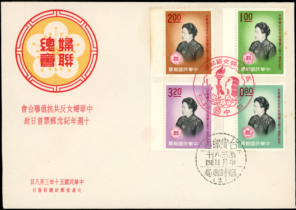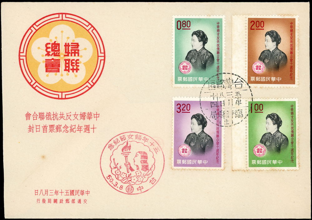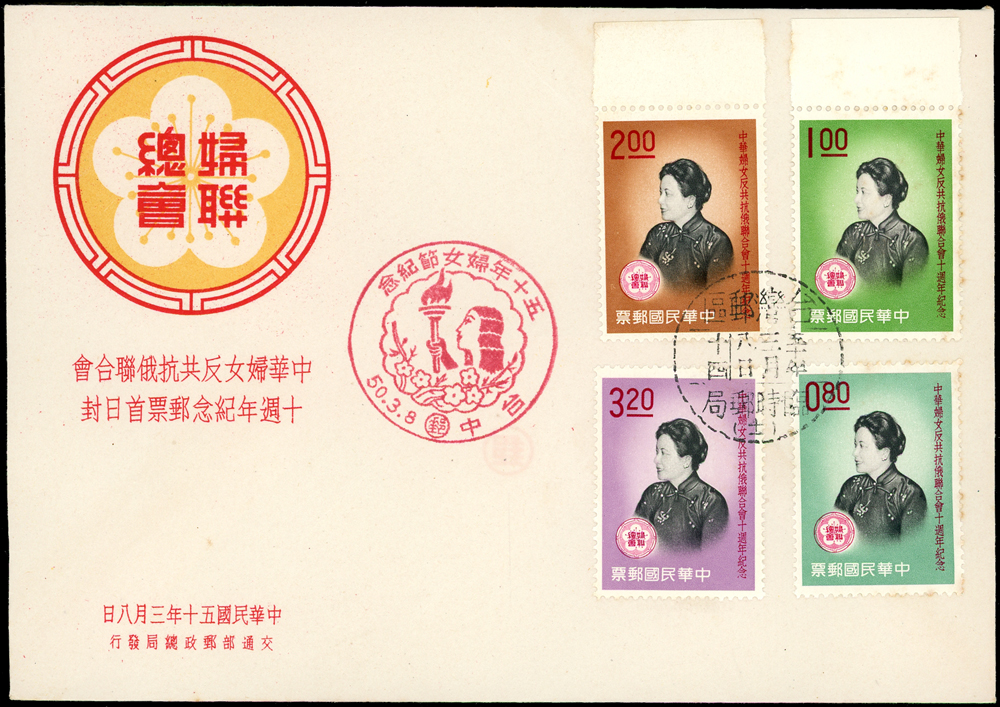 台灣早期套票首日局封42封(37套),包括:中華婦女反共抗俄聯合會十週年紀念5封,郵購服務24封,民用航空四十週年1封,體育(49年版)7套(其中1套6全分貼6封),封微斑點,VF-F(Page 123)
