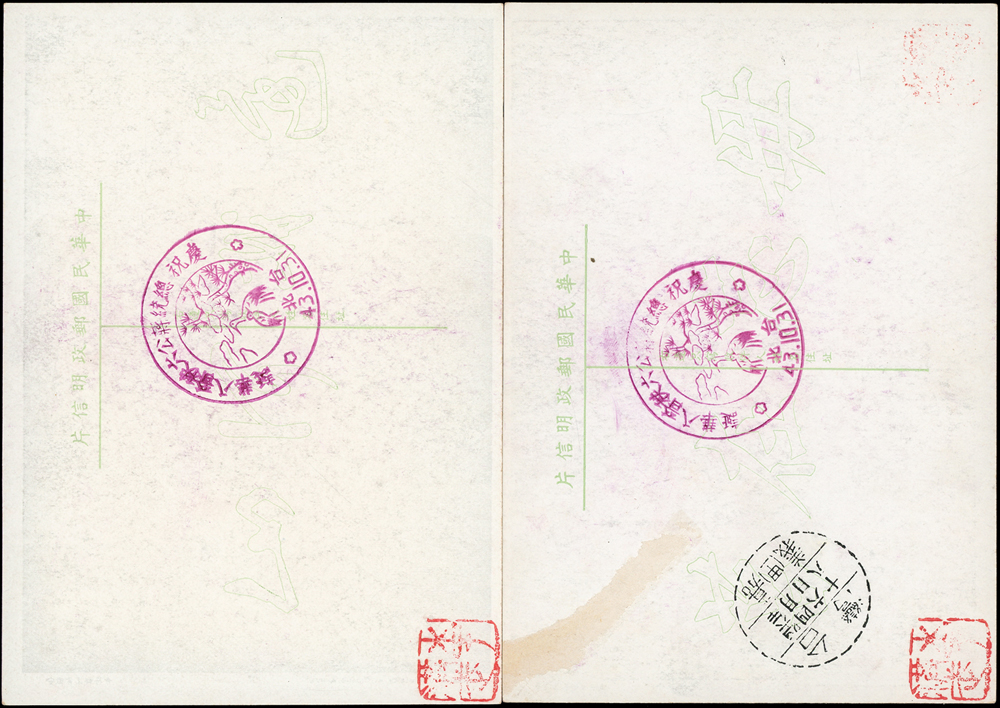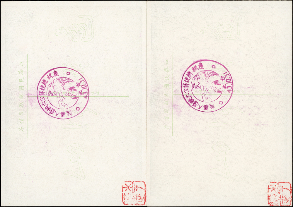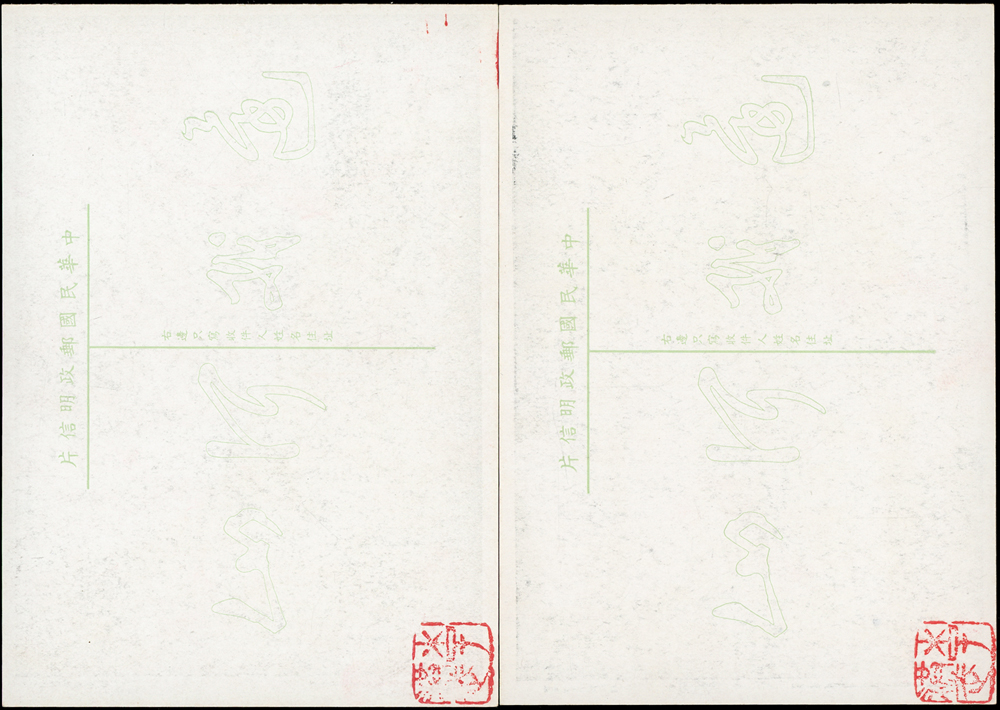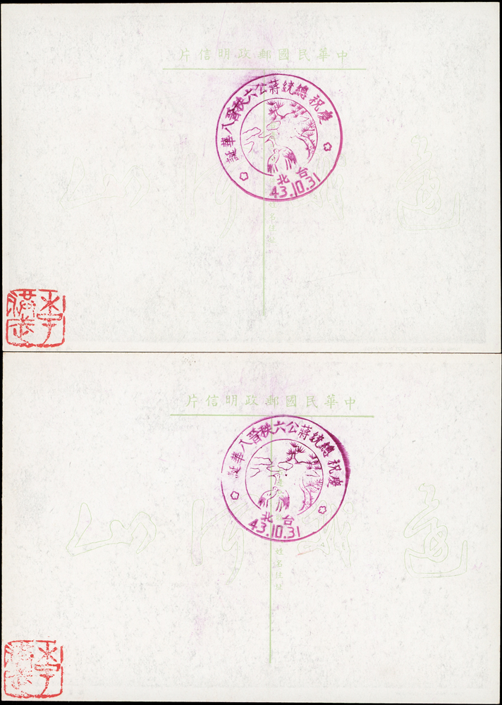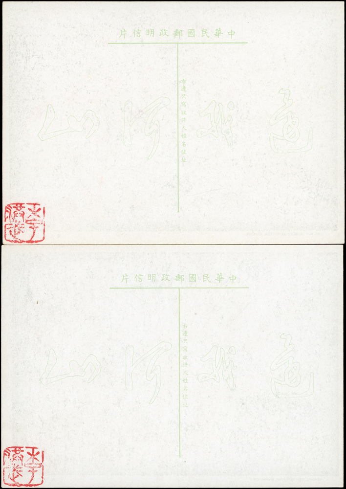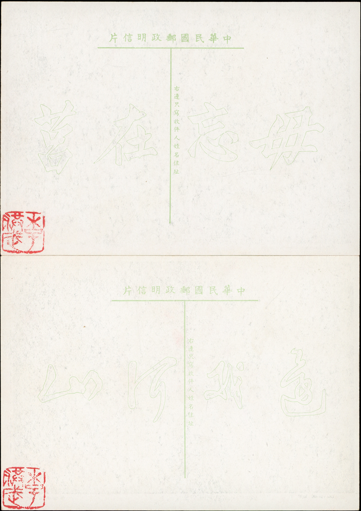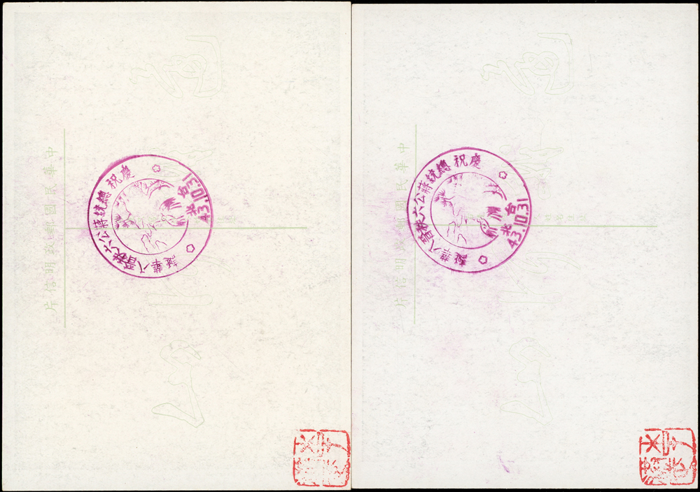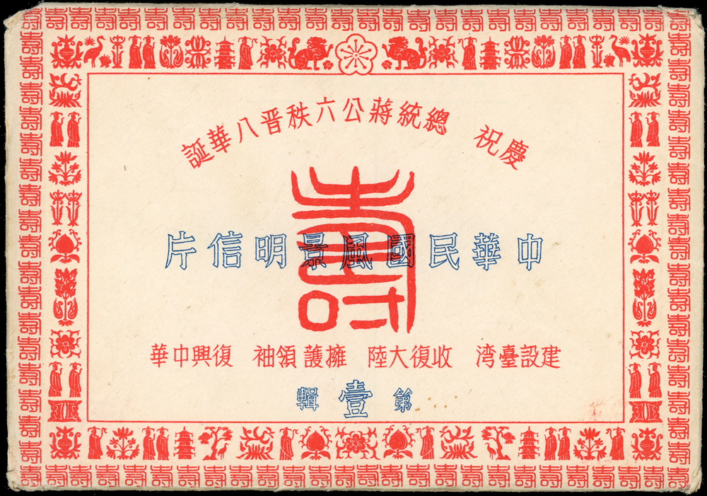 韓目#25~#60.蔣公六秩晉八華誕紀念明信片36片全,附封套,每片格式面及封套均蓋收藏章,第二.三輯格式面及封套銷其紀念戳,其中台灣嘉義回歸線標格式面左上揭薄銷嘉義日戳,江西廬山左邊一道原紙皺痕,部分圖案面微沾染紀戳紅色(Page 124)
