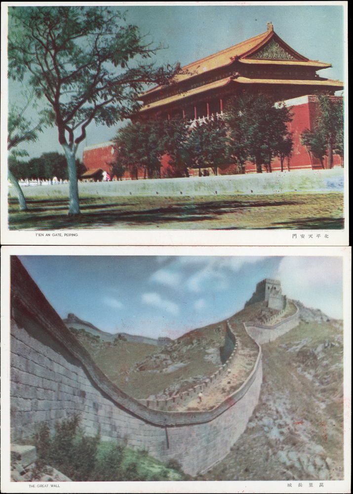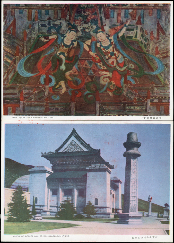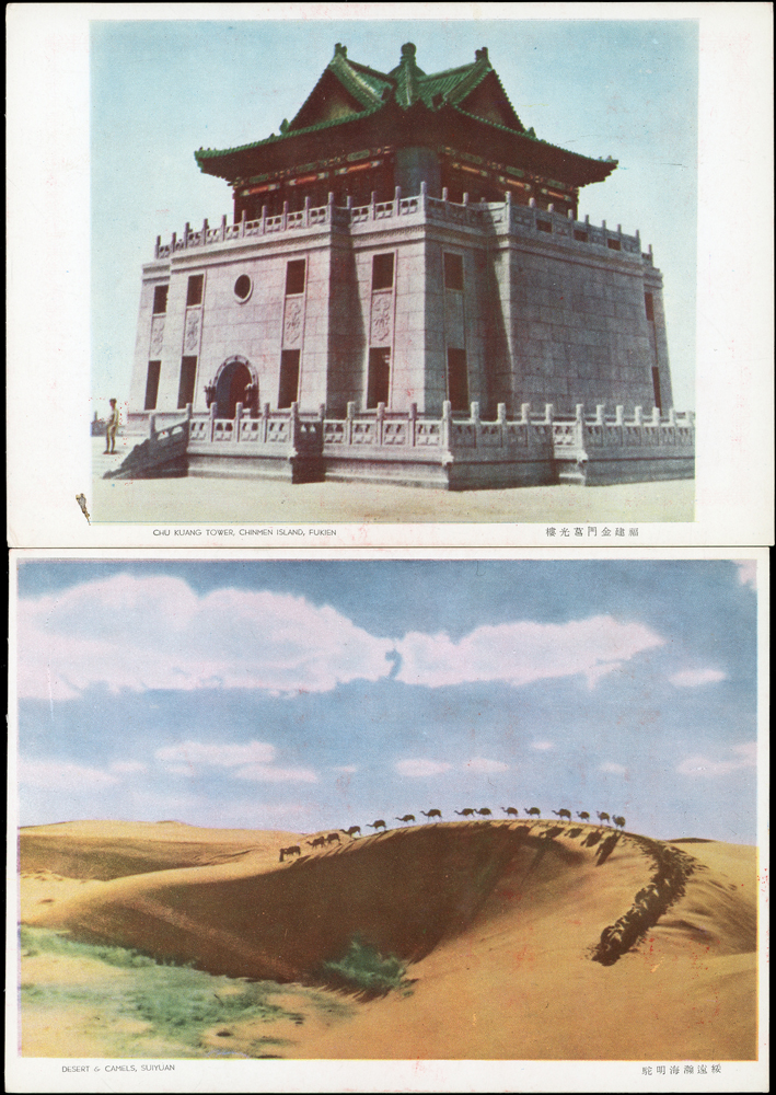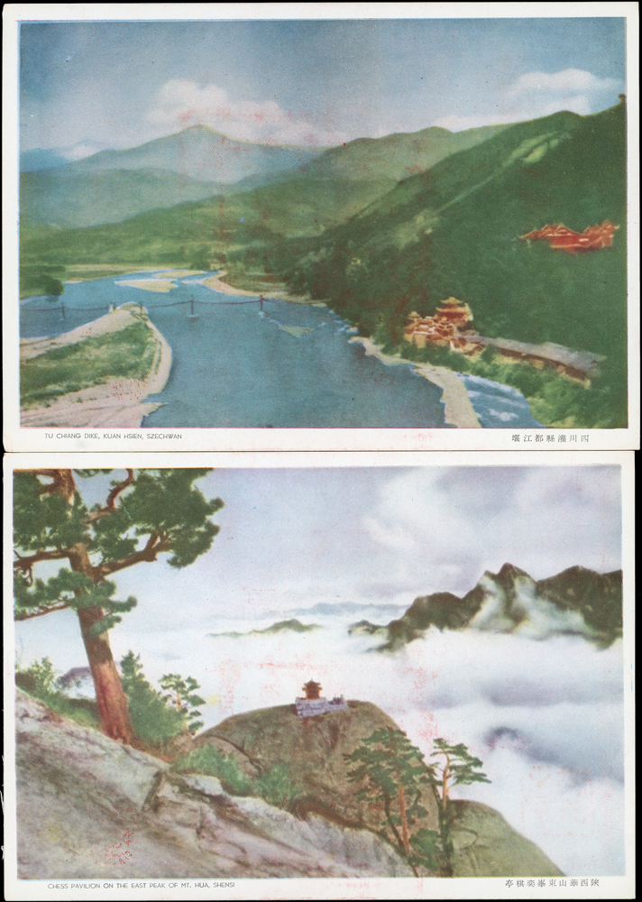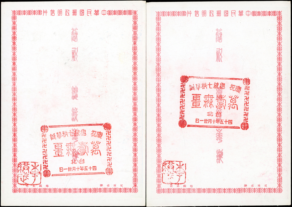 韓目#61~84.民國45年10月《岡陵獻頌 薄海騰歡》祝壽風景明信片24片,缺北投鄉村景色成全套,格式面均銷其紀戳及收藏章,其中台北博物館格式面貼地圖2角銷日戳,附封套(色淡微污)(Page 124)