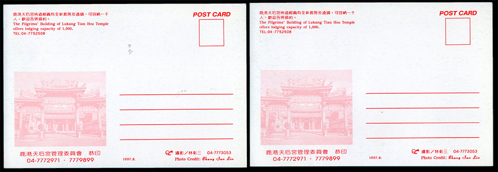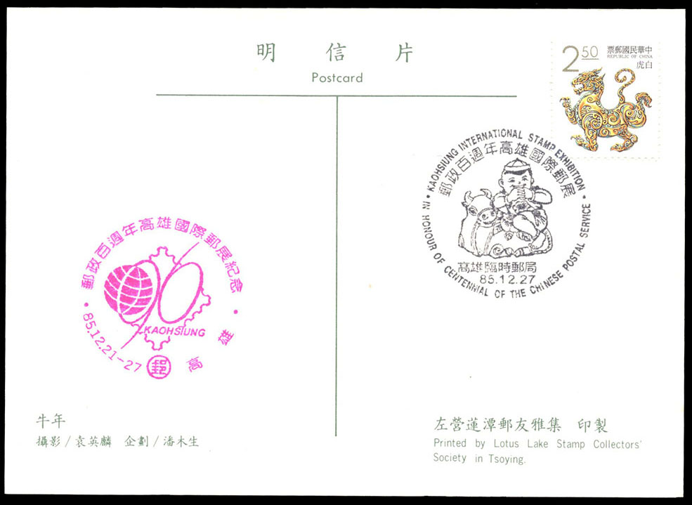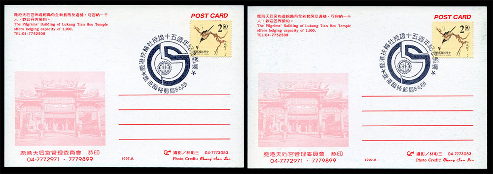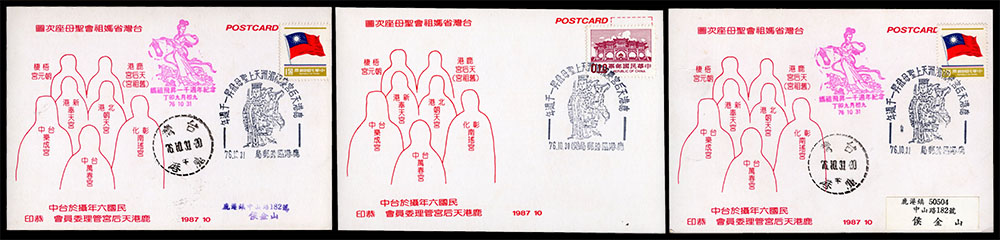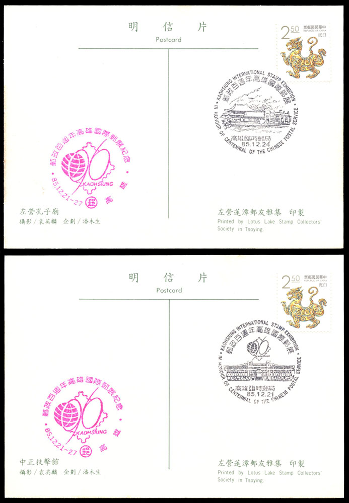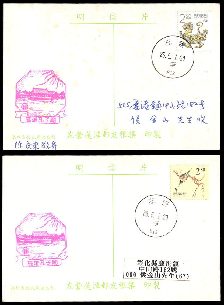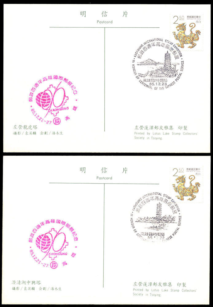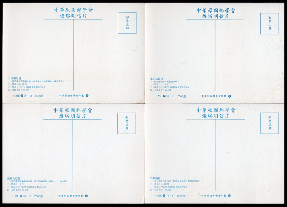 彩色私片66片:(1)燈塔原圖片一組共20片,新,中華原圖郵學會印製;(2)高雄彩色風景片一組共9片,其中2片實寄,其餘蓋銷85.12.27郵政百週年高雄郵展臨局戳;左營蓮潭郵友雅集印製;(3)1997年鹿港天后宮彩色私片一組共13片,其中七片貼票銷戳或實寄,其餘新片;(4)台灣稀有動物彩色片一組共24片,新,農委會監製