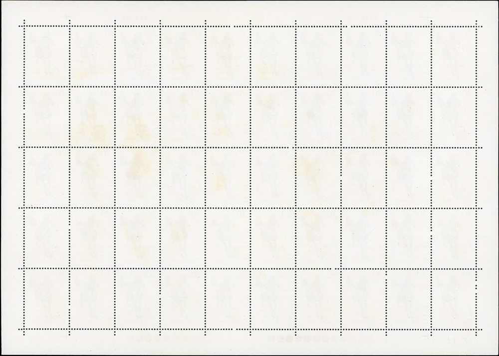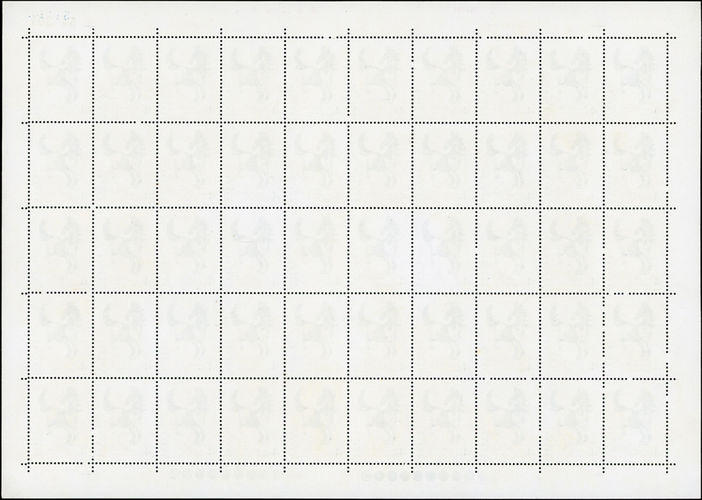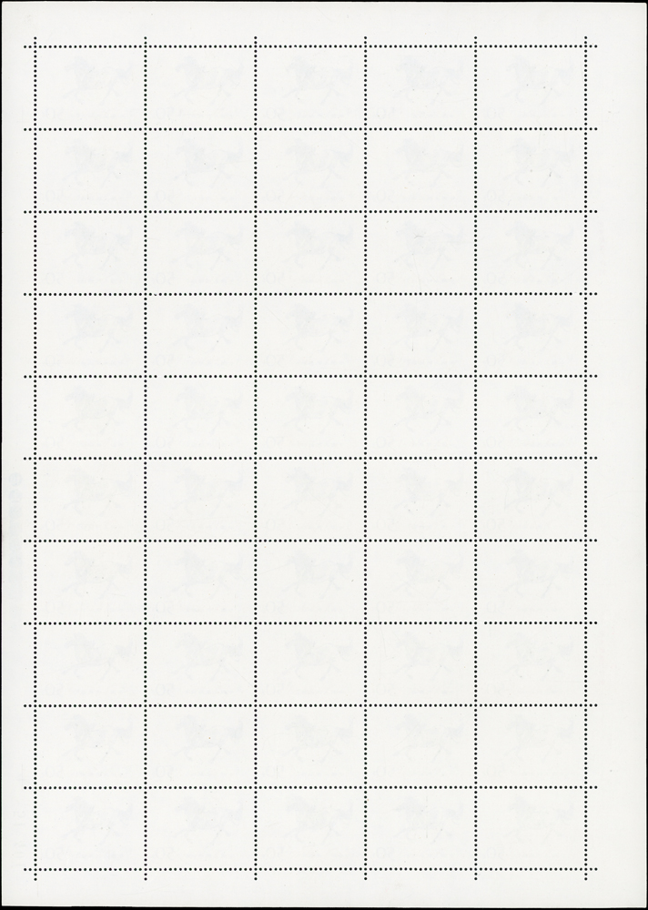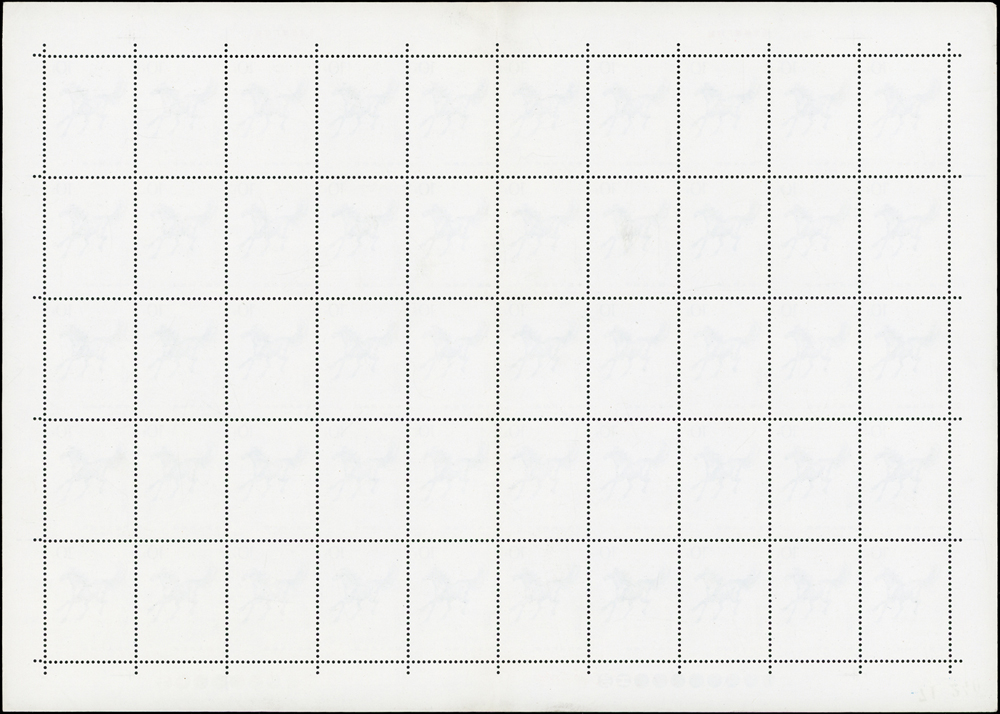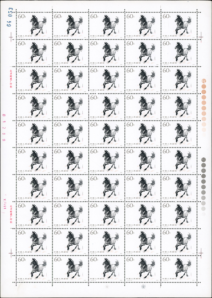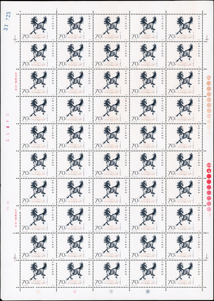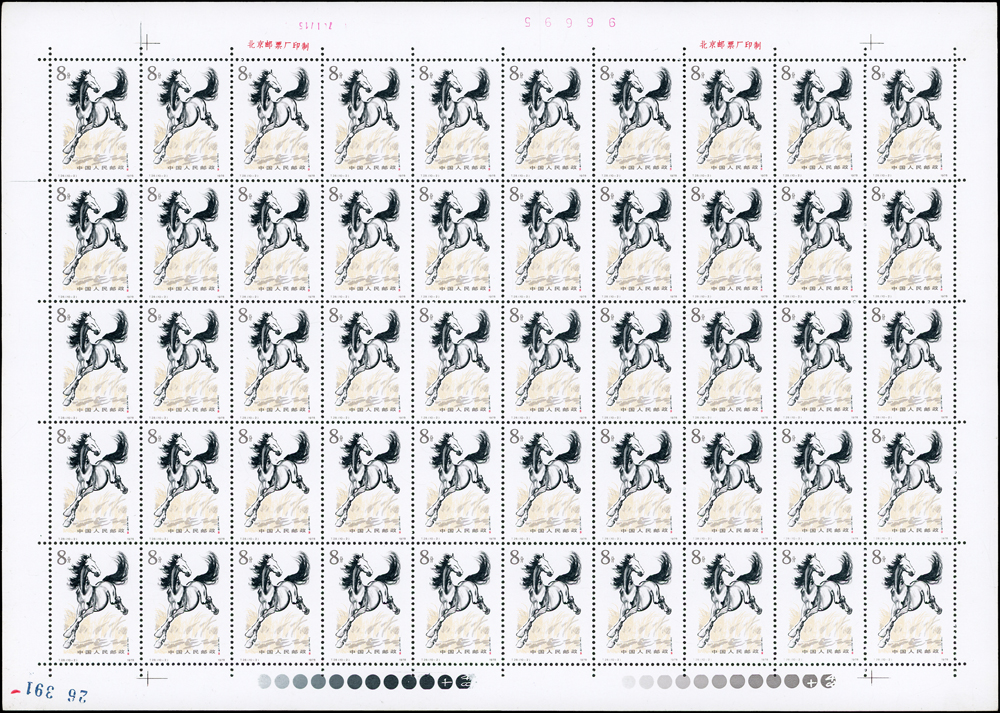 T28.奔馬圖新票10全一全張50套,原膠,(10-4)折版,其餘挺版,其中(10-1)(10-3)(10-5)(10-10)背面局部淡黃,VF-F(Page 132)