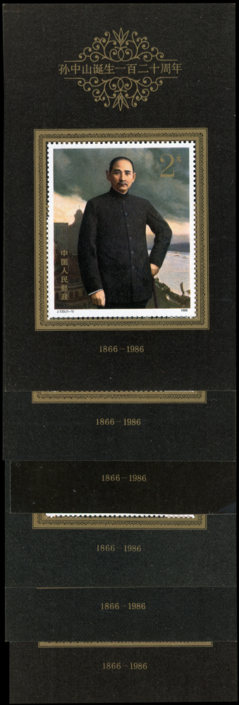 新中國小型張17枚:(1)R24m.中華全國集郵展覽'89.北京小型張11枚,VF;(2)J133m.孫中山誕生120週年6枚,其中1枚背面均勻淡黃,其餘背面微沾墨痕或原紙雜點,VF-F(Page 135)