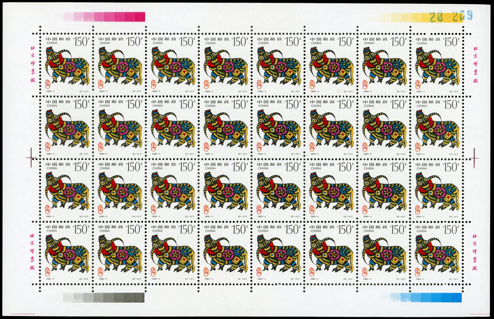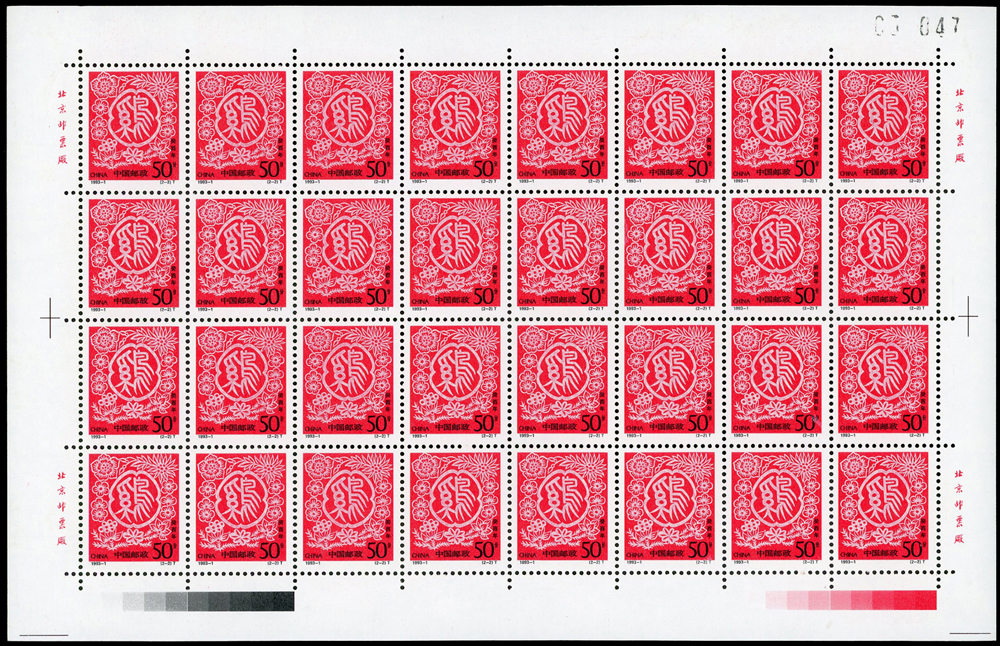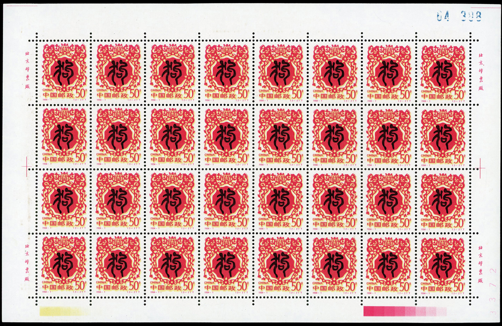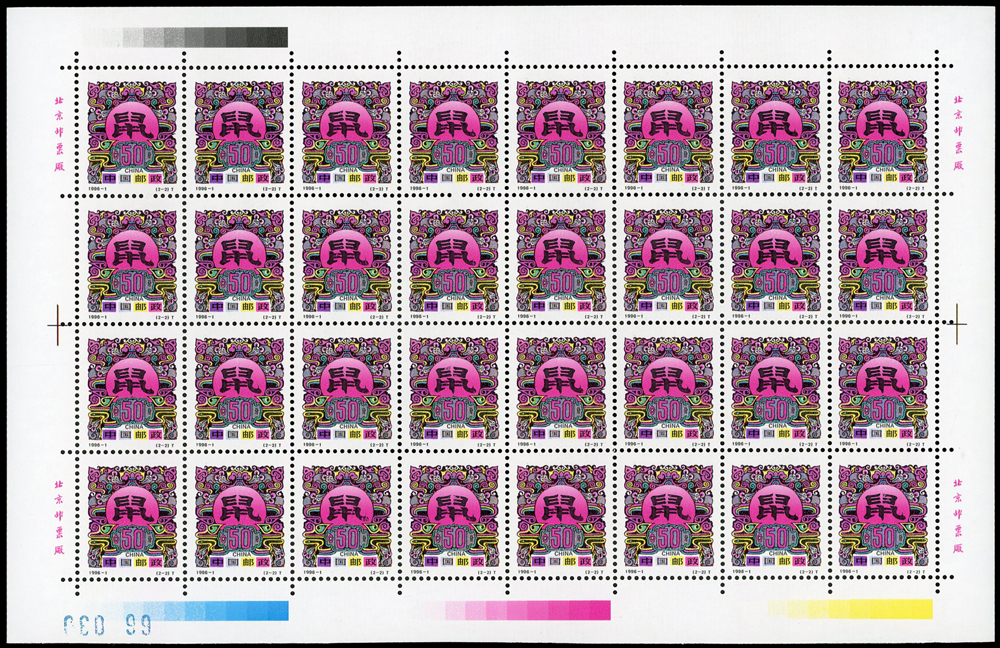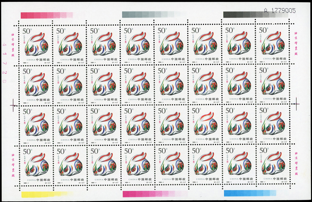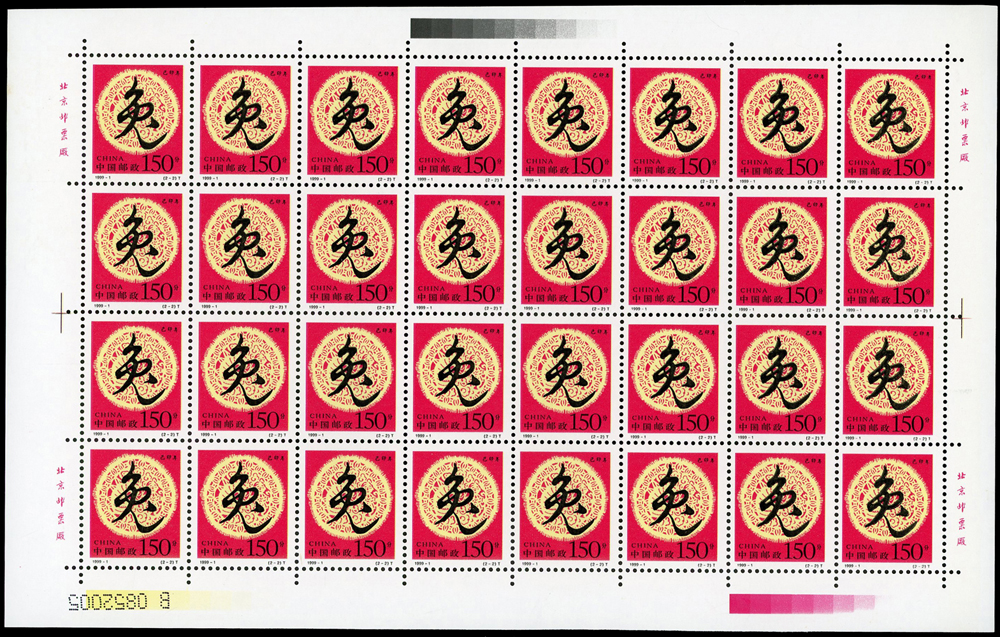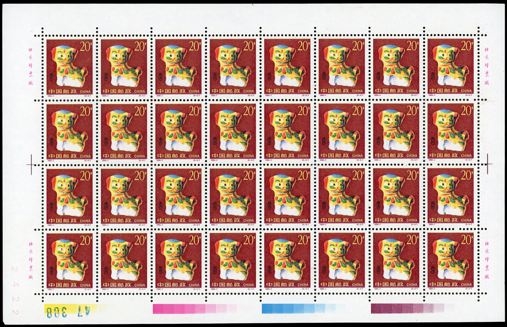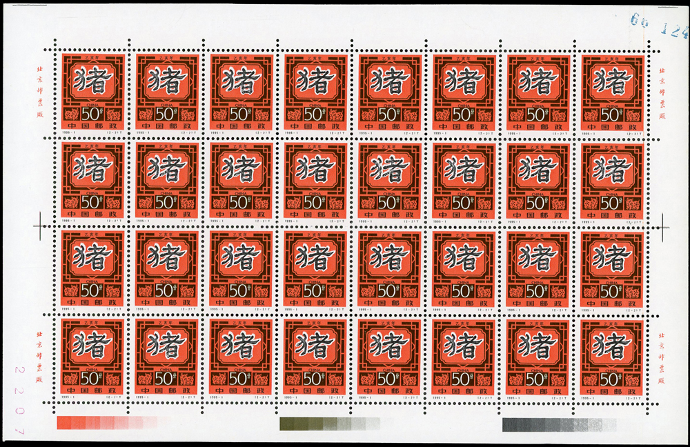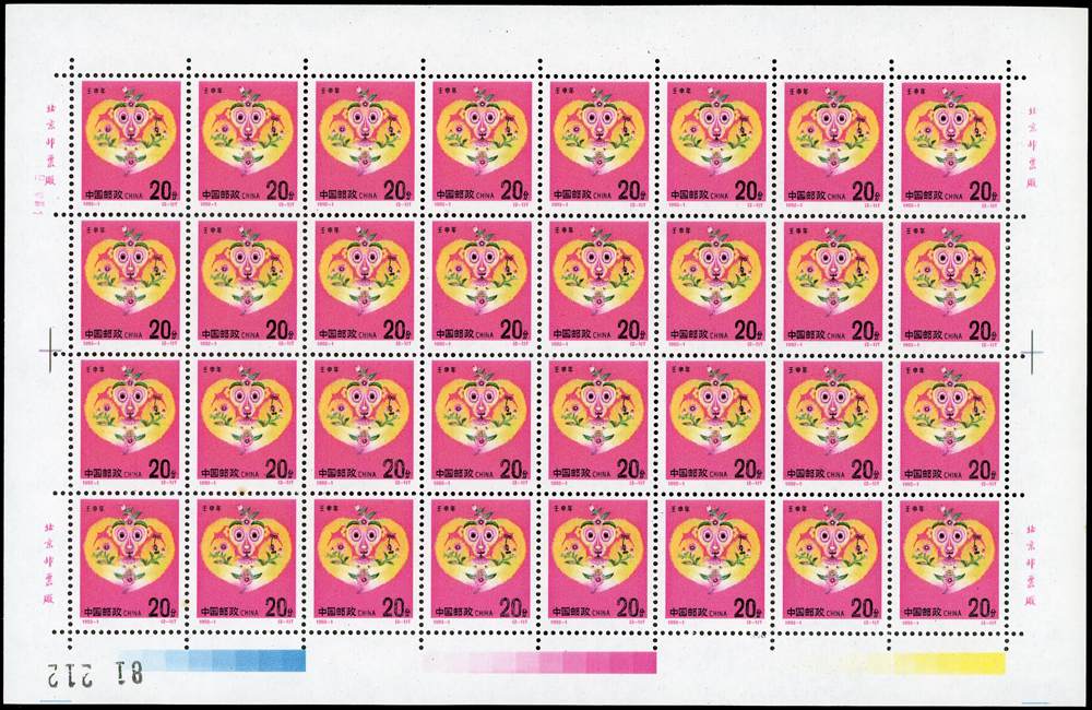 新中國十二生肖1992-1~1999-1.猴至兔年各2全版張,共16版新票,原膠挺版,兔年(2-2)左上及(2-1)右下邊紙緣淡黃無損票,猴年少數齒淡黃,雞年(2-1)背面下方中央1個原紙雜點,其餘VF(Page 136)