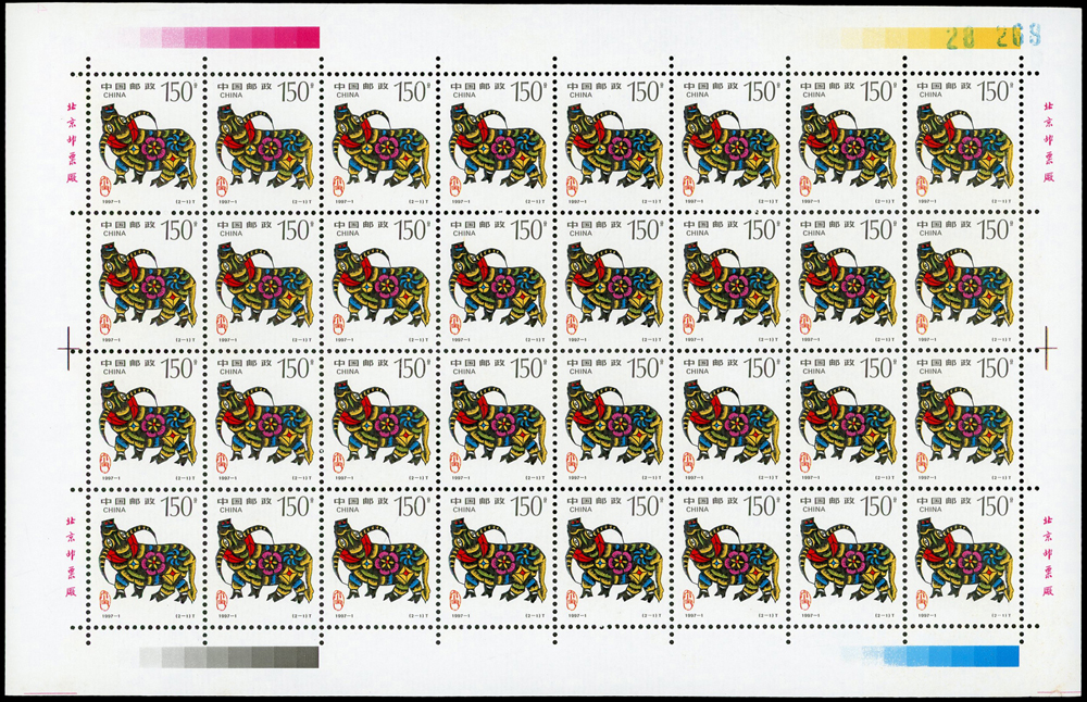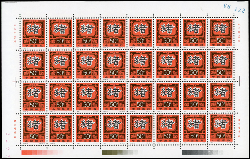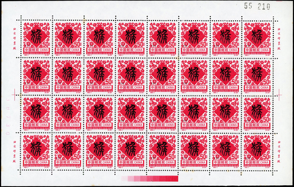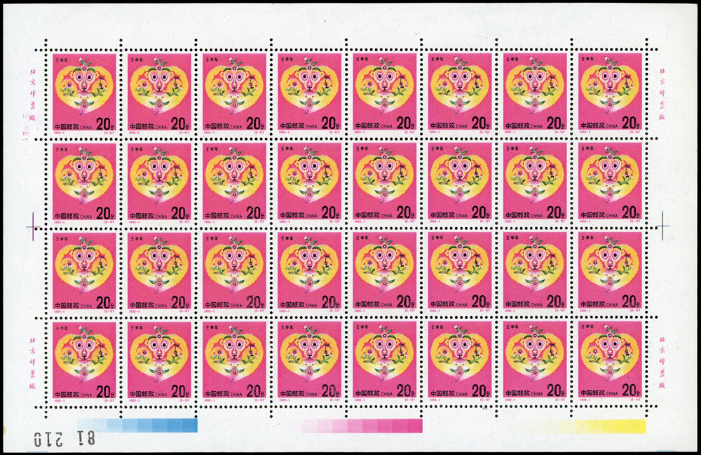 新中國十二生肖1992-1~2003-1.猴至羊年各2全版張,缺馬年成大全套,共22版新票,原膠挺版,2000-1龍年正面金色無氧化現象,蛇年(2-2)左下邊紙緣1個黃點無損票,猴年少數齒及邊白淡黃,其餘VF(Page 136)