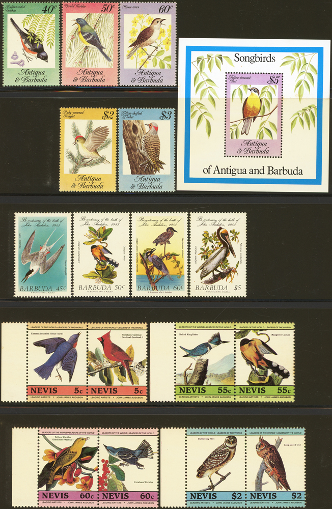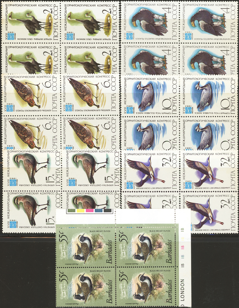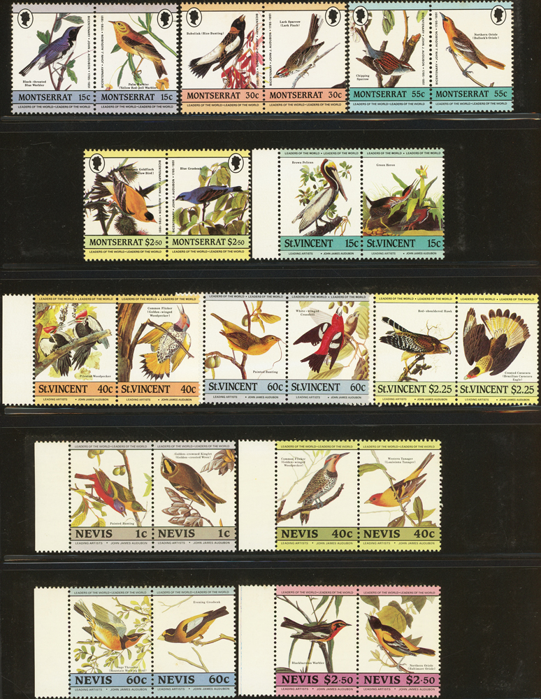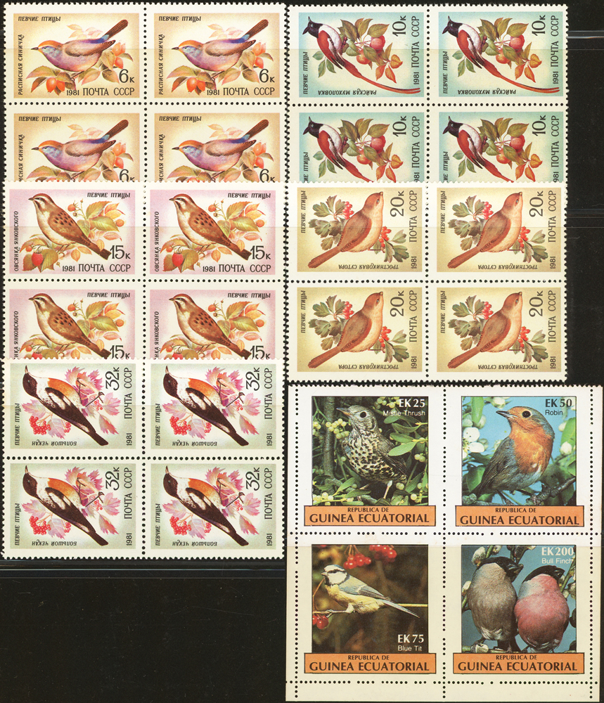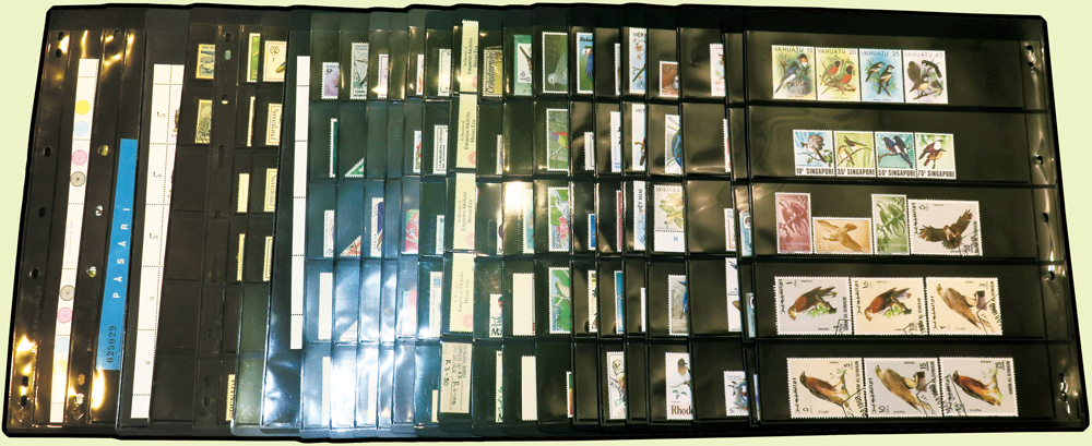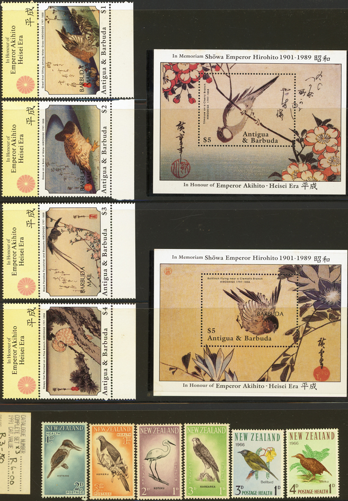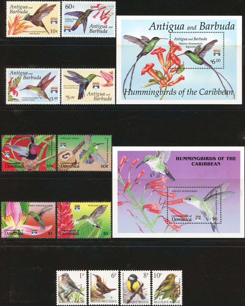《鳥類》專題郵票小輯,含新票723枚,舊票98枚,未銷戳小全張18枚,未銷戳小版張4版,整理整齊於黑卡中,部分成套,國家包括有:美國.賴索托.羅馬.迦納.蒙古.巴拉圭.索羅門群島.史瓦濟蘭.福克蘭群島.加拿大.澳洲,紐西蘭.宏都拉斯.安圭拉.南非.格林那達.馬爾地夫.印尼.摩爾達維亞.根西島.以色列.斯洛伐克.波蘭.匈牙利.剛果.西班牙.保加利亞.馬尼亞.冰島.馬拉威.諾福克島.聖文森.安地卡及巴布達.多明尼加.蘇聯.巴哈馬.馬拉威.巴貝多.巴西.尼加拉瓜.圭亞那.韓國.台灣.巴布亞紐幾內亞.馬來西亞,越南.羅德西亞.中國.日本.牙買加.模里西斯.阿根廷.新加坡.萬那杜.辛巴威等等,少數為方連,多數不重複,品像混合,VF-F;歡迎至官網瀏覽全貌(Page 141)