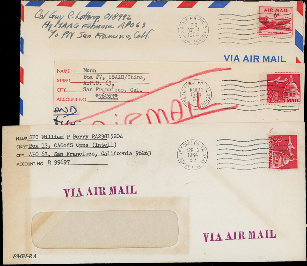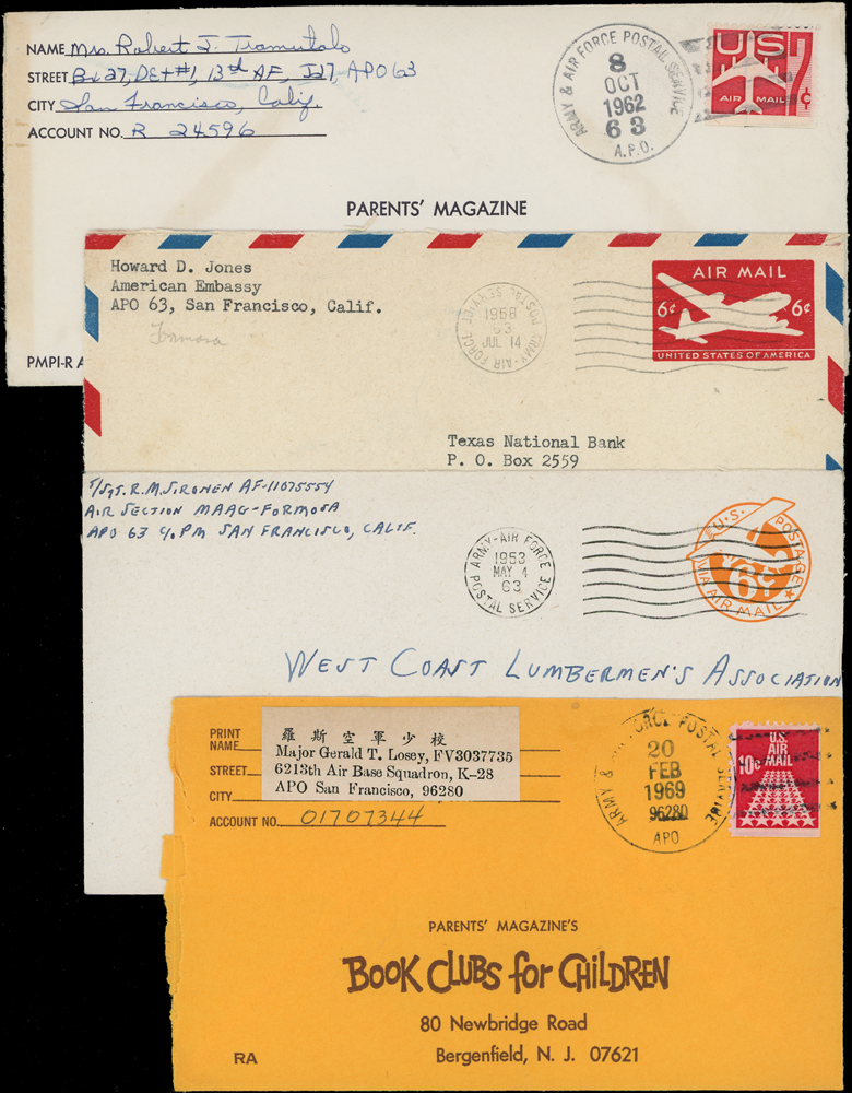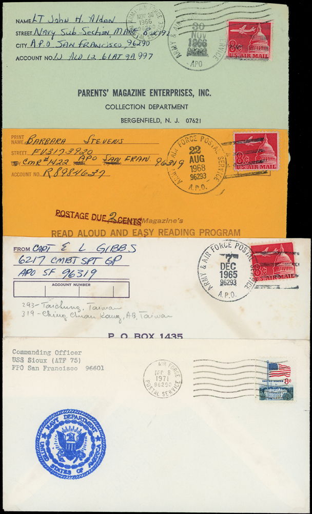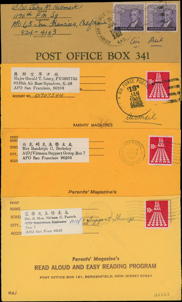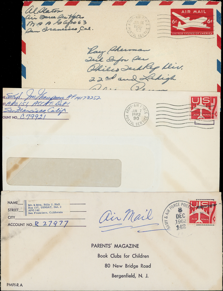 美國實寄封一組共62封(1)1959-1969年A.P.O.軍郵封42封;(2)1930-1996年實寄封18封;(3)1940年欠資封一件;(4)1942年夏威夷檢查封一件;林茂興舊藏(Page 141)