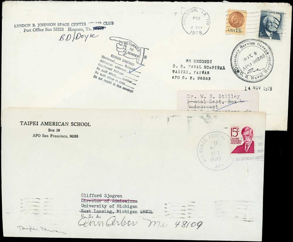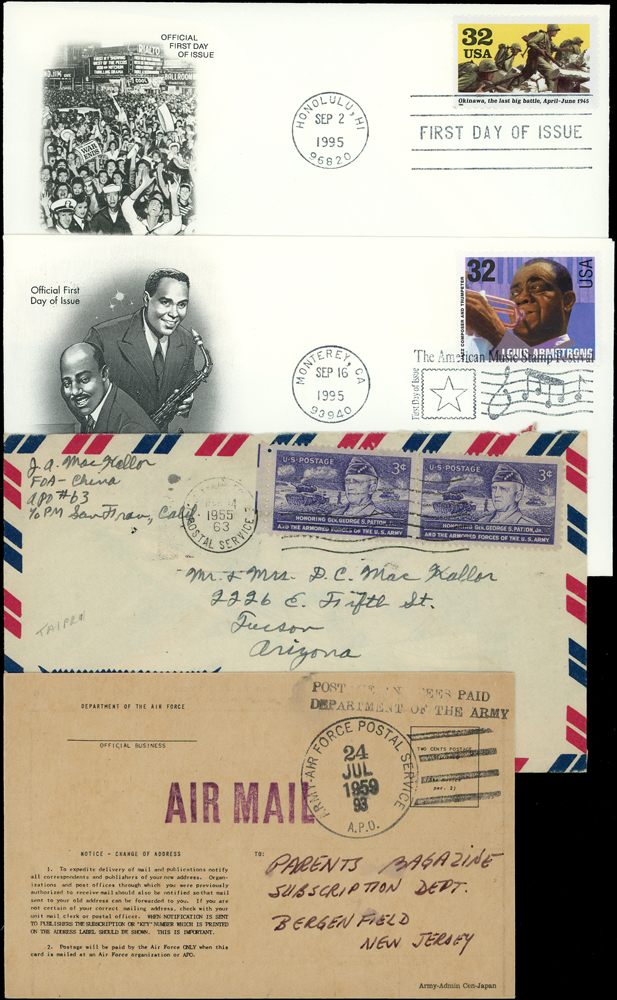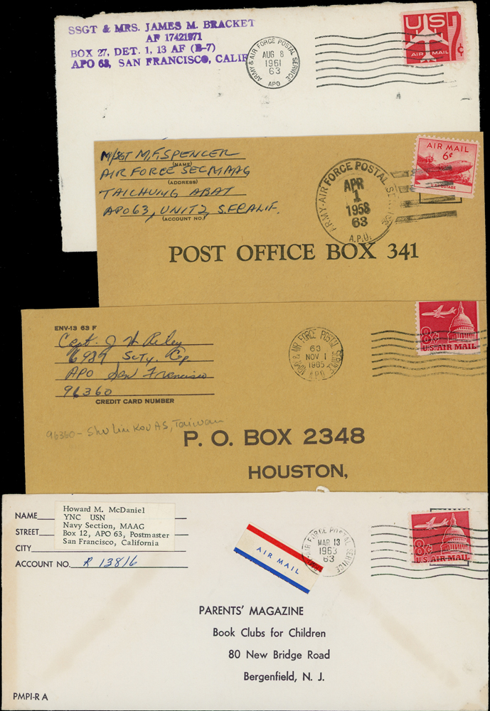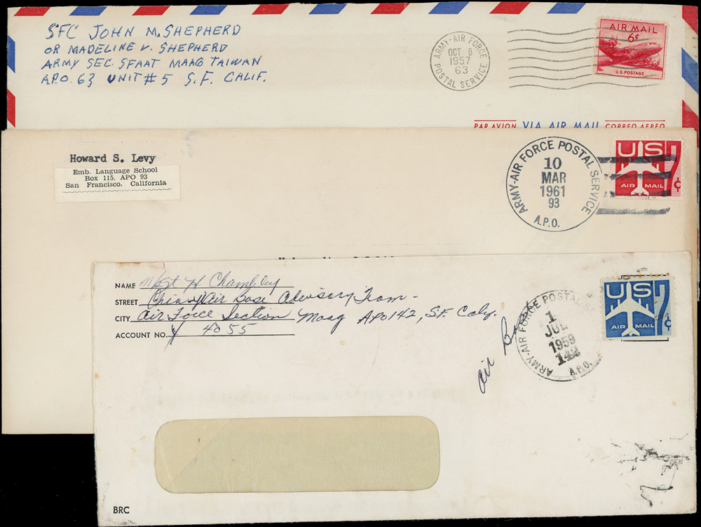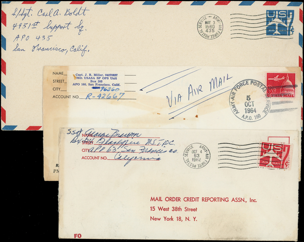美國實寄封一組共62封(1)1959-1969年A.P.O.軍郵封42封;(2)1930-1996年實寄封18封;(3)1940年欠資封一件;(4)1942年夏威夷檢查封一件;林茂興舊藏(Page 141)