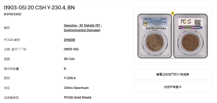 錢幣分類 中國錢幣中國歷代古錢(8001-8022)中國機制銀幣(8023-8108)中國機制銅幣/鎳幣/鋁幣(8109-8142)偽政權錢幣(8143-8144)台灣銀行~流通幣(8145-8187)台灣銀行~試鑄幣(8188)台灣銀行~紀念幣(章)(8189-8210)中國人民銀行~流通幣(8211-8217)中國人民銀行~金銀紀念幣(8218-8236)各時期~紀念章(8238-8258)中國香港錢幣(8259-8263)世界各國錢幣日本錢幣(8264-8283)世界各國錢幣(A~Z)(8284-8309)晚到項次~新中國金.銀幣(8825-8827) 中國錢幣 ↳中國歷代古錢(8001-8022) ↳中國機制銀幣(8023-8108) ↳中國機制銅幣/鎳幣/鋁幣(8109-8142) ↳偽政權錢幣(8143-8144) ↳台灣銀行~流通幣(8145-8187) ↳台灣銀行~試鑄幣(8188) ↳台灣銀行~紀念幣(章)(8189-8210) ↳中國人民銀行~流通幣(8211-8217) ↳中國人民銀行~金銀紀念幣(8218-8236) ↳各時期~紀念章(8238-8258) ↳中國香港錢幣(8259-8263)世界各國錢幣 ↳日本錢幣(8264-8283) ↳世界各國錢幣(A~Z)(8284-8309) ↳晚到項次~新中國金.銀幣(8825-8827) 點大圖放大展示,點小圖切換 四川省造光緒元寶當二十銅幣,PCGS Genuine Environmental Damage-XF Detail 金盾(Page 15) 結標時間 2025-12-16 10:38:20 拍品編號:8116 起拍價:NT$2800 當前價:NT$2800 自動出價 直接出價 出價 系統將按出價級數,依序為您比(出)價至上限金額 提醒您:直接出價後不可將金額改低,只能改高,蟠龍無法降低您的出價,最高出價者無法取消出價 (查看出價說明) 得標說明:需按得標價另加10%佣金 當前加價幅度:NT$0元 (查看加價級數表) 回上頁 線上出價記錄 線上 0 人次,書面 0 人次 競價客戶 所在地 出價時間 出價金額 出價方式 問與答 目前尚無提問 我要提問 請先登入會員