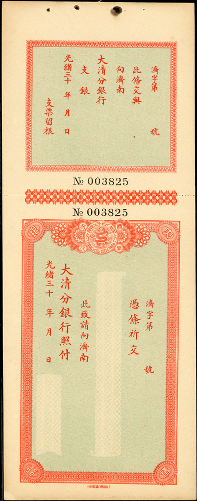紙鈔分類 中國紙鈔清代~紙幣/股票/債券(8310-8323)『楊展孝』收藏~中央銀行銀元兑換券(8324-8380)民國~中央銀行紙幣(8381-8424)民國~中國銀行(8425-8448)民國~交通銀行(8449-8459)民國~中國農民銀行(8460-8462)民國~各省銀行券(8463-8491)民國~軍用鈔票(8492-8504)民國~地方券/錢莊票(8505-8510)民國~偽政權紙幣(8511-8519)民國金融票證~債券/股票(8520-8543)臺灣銀行~日治時期(8544-8552)臺灣銀行~老台幣(8553-8577)臺灣銀行~新台幣(8578-8679)臺灣銀行~限金門/限馬祖通用(8680-8694)臺灣銀行~限大陳島通用(8695-8696)臺灣/中央銀行~趣味號(8697-8706)中央銀行~三連鈔(8707-8709)臺灣各式金融票證(8710-8715)日本『山崎 修之亮』收藏~中國及外國紙幣(8716-8738)新中國紙幣解放區時期紙幣/債券(8739-8740)中國人民銀行~各版人民幣/外匯券/金融票證(8741-8759)世界各國紙幣日本紙幣(8760-8773)世界各國紙幣(A~Z)(8774-8783) 中國紙鈔 ↳清代~紙幣/股票/債券(8310-8323) ↳『楊展孝』收藏~中央銀行銀元兑換券(8324-8380) ↳民國~中央銀行紙幣(8381-8424) ↳民國~中國銀行(8425-8448) ↳民國~交通銀行(8449-8459) ↳民國~中國農民銀行(8460-8462) ↳民國~各省銀行券(8463-8491) ↳民國~軍用鈔票(8492-8504) ↳民國~地方券/錢莊票(8505-8510) ↳民國~偽政權紙幣(8511-8519) ↳民國金融票證~債券/股票(8520-8543) ↳臺灣銀行~日治時期(8544-8552) ↳臺灣銀行~老台幣(8553-8577) ↳臺灣銀行~新台幣(8578-8679) ↳臺灣銀行~限金門/限馬祖通用(8680-8694) ↳臺灣銀行~限大陳島通用(8695-8696) ↳臺灣/中央銀行~趣味號(8697-8706) ↳中央銀行~三連鈔(8707-8709) ↳臺灣各式金融票證(8710-8715) ↳日本『山崎 修之亮』收藏~中國及外國紙幣(8716-8738)新中國紙幣 ↳解放區時期紙幣/債券(8739-8740) ↳中國人民銀行~各版人民幣/外匯券/金融票證(8741-8759)世界各國紙幣 ↳日本紙幣(8760-8773) ↳世界各國紙幣(A~Z)(8774-8783) 點大圖放大展示,點小圖切換 2 (1904年)光緒30年『大清分銀行』支票,含存根,少見,尺寸:31.5*12.1cm,未簽用,95新(Page 36) 結標時間 2025-12-16 11:44:40 拍品編號:8315 起拍價:NT$9500 當前價:NT$9500 自動出價 直接出價 出價 系統將按出價級數,依序為您比(出)價至上限金額 提醒您:直接出價後不可將金額改低,只能改高,蟠龍無法降低您的出價,最高出價者無法取消出價 (查看出價說明) 得標說明:需按得標價另加10%佣金 當前加價幅度:NT$0元 (查看加價級數表) 回上頁 線上出價記錄 線上 0 人次,書面 0 人次 競價客戶 所在地 出價時間 出價金額 出價方式 問與答 目前尚無提問 我要提問 請先登入會員