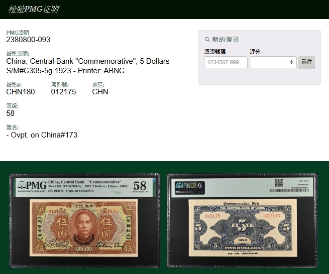 紙鈔分類 中國紙鈔清代~紙幣/股票/債券(8310-8323)『楊展孝』收藏~中央銀行銀元兑換券(8324-8380)民國~中央銀行紙幣(8381-8424)民國~中國銀行(8425-8448)民國~交通銀行(8449-8459)民國~中國農民銀行(8460-8462)民國~各省銀行券(8463-8491)民國~軍用鈔票(8492-8504)民國~地方券/錢莊票(8505-8510)民國~偽政權紙幣(8511-8519)民國金融票證~債券/股票(8520-8543)臺灣銀行~日治時期(8544-8552)臺灣銀行~老台幣(8553-8577)臺灣銀行~新台幣(8578-8679)臺灣銀行~限金門/限馬祖通用(8680-8694)臺灣銀行~限大陳島通用(8695-8696)臺灣/中央銀行~趣味號(8697-8706)中央銀行~三連鈔(8707-8709)臺灣各式金融票證(8710-8715)日本『山崎 修之亮』收藏~中國及外國紙幣(8716-8738)新中國紙幣解放區時期紙幣/債券(8739-8740)中國人民銀行~各版人民幣/外匯券/金融票證(8741-8759)世界各國紙幣日本紙幣(8760-8773)世界各國紙幣(A~Z)(8774-8783) 中國紙鈔 ↳清代~紙幣/股票/債券(8310-8323) ↳『楊展孝』收藏~中央銀行銀元兑換券(8324-8380) ↳民國~中央銀行紙幣(8381-8424) ↳民國~中國銀行(8425-8448) ↳民國~交通銀行(8449-8459) ↳民國~中國農民銀行(8460-8462) ↳民國~各省銀行券(8463-8491) ↳民國~軍用鈔票(8492-8504) ↳民國~地方券/錢莊票(8505-8510) ↳民國~偽政權紙幣(8511-8519) ↳民國金融票證~債券/股票(8520-8543) ↳臺灣銀行~日治時期(8544-8552) ↳臺灣銀行~老台幣(8553-8577) ↳臺灣銀行~新台幣(8578-8679) ↳臺灣銀行~限金門/限馬祖通用(8680-8694) ↳臺灣銀行~限大陳島通用(8695-8696) ↳臺灣/中央銀行~趣味號(8697-8706) ↳中央銀行~三連鈔(8707-8709) ↳臺灣各式金融票證(8710-8715) ↳日本『山崎 修之亮』收藏~中國及外國紙幣(8716-8738)新中國紙幣 ↳解放區時期紙幣/債券(8739-8740) ↳中國人民銀行~各版人民幣/外匯券/金融票證(8741-8759)世界各國紙幣 ↳日本紙幣(8760-8773) ↳世界各國紙幣(A~Z)(8774-8783) 點大圖放大展示,點小圖切換 5 中央銀行十二年5元愛國紀念券,鈔號012175。PMG 58。楊著「中央銀行銀元兑換券」第18頁(Page 37) 結標時間 2025-12-16 11:49:00 拍品編號:8328 起拍價:NT$48000 當前價:NT$48000 自動出價 直接出價 出價 系統將按出價級數,依序為您比(出)價至上限金額 提醒您:直接出價後不可將金額改低,只能改高,蟠龍無法降低您的出價,最高出價者無法取消出價 (查看出價說明) 得標說明:需按得標價另加10%佣金 當前加價幅度:NT$0元 (查看加價級數表) 回上頁 線上出價記錄 線上 0 人次,書面 0 人次 競價客戶 所在地 出價時間 出價金額 出價方式 問與答 目前尚無提問 我要提問 請先登入會員