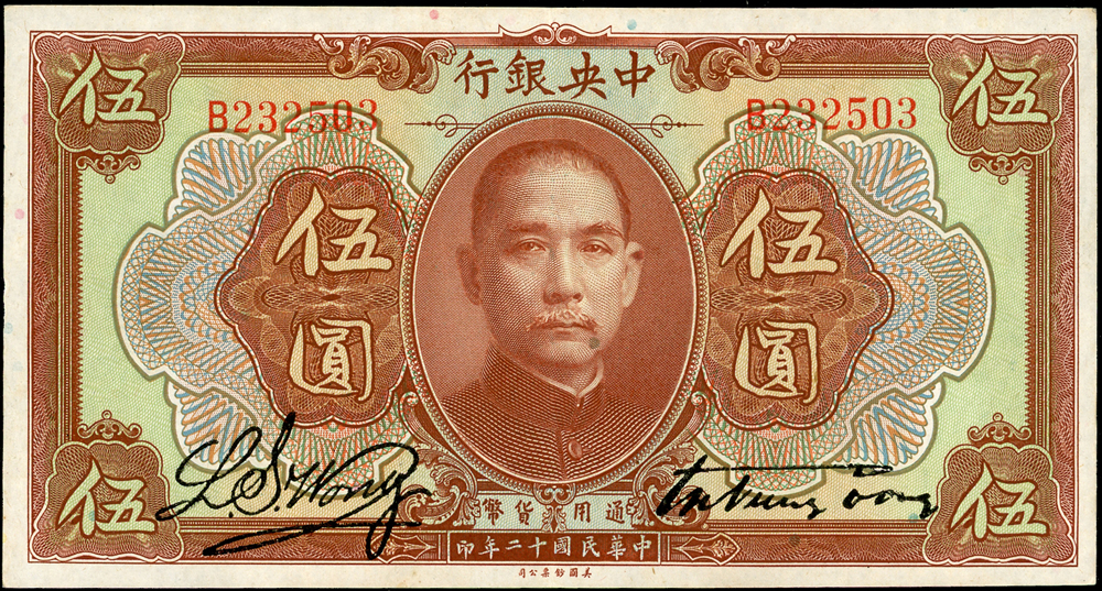 紙鈔分類 中國紙鈔清代~紙幣/股票/債券(8310-8323)『楊展孝』收藏~中央銀行銀元兑換券(8324-8380)民國~中央銀行紙幣(8381-8424)民國~中國銀行(8425-8448)民國~交通銀行(8449-8459)民國~中國農民銀行(8460-8462)民國~各省銀行券(8463-8491)民國~軍用鈔票(8492-8504)民國~地方券/錢莊票(8505-8510)民國~偽政權紙幣(8511-8519)民國金融票證~債券/股票(8520-8543)臺灣銀行~日治時期(8544-8552)臺灣銀行~老台幣(8553-8577)臺灣銀行~新台幣(8578-8679)臺灣銀行~限金門/限馬祖通用(8680-8694)臺灣銀行~限大陳島通用(8695-8696)臺灣/中央銀行~趣味號(8697-8706)中央銀行~三連鈔(8707-8709)臺灣各式金融票證(8710-8715)日本『山崎 修之亮』收藏~中國及外國紙幣(8716-8738)新中國紙幣解放區時期紙幣/債券(8739-8740)中國人民銀行~各版人民幣/外匯券/金融票證(8741-8759)世界各國紙幣日本紙幣(8760-8773)世界各國紙幣(A~Z)(8774-8783) 中國紙鈔 ↳清代~紙幣/股票/債券(8310-8323) ↳『楊展孝』收藏~中央銀行銀元兑換券(8324-8380) ↳民國~中央銀行紙幣(8381-8424) ↳民國~中國銀行(8425-8448) ↳民國~交通銀行(8449-8459) ↳民國~中國農民銀行(8460-8462) ↳民國~各省銀行券(8463-8491) ↳民國~軍用鈔票(8492-8504) ↳民國~地方券/錢莊票(8505-8510) ↳民國~偽政權紙幣(8511-8519) ↳民國金融票證~債券/股票(8520-8543) ↳臺灣銀行~日治時期(8544-8552) ↳臺灣銀行~老台幣(8553-8577) ↳臺灣銀行~新台幣(8578-8679) ↳臺灣銀行~限金門/限馬祖通用(8680-8694) ↳臺灣銀行~限大陳島通用(8695-8696) ↳臺灣/中央銀行~趣味號(8697-8706) ↳中央銀行~三連鈔(8707-8709) ↳臺灣各式金融票證(8710-8715) ↳日本『山崎 修之亮』收藏~中國及外國紙幣(8716-8738)新中國紙幣 ↳解放區時期紙幣/債券(8739-8740) ↳中國人民銀行~各版人民幣/外匯券/金融票證(8741-8759)世界各國紙幣 ↳日本紙幣(8760-8773) ↳世界各國紙幣(A~Z)(8774-8783) 點大圖放大展示,點小圖切換 2 中央銀行十二年5元,鈔號B232503 (丙券)。顏色鮮明,品相較好,僅中間一折痕。約8成新。楊著「中央銀行銀元兑換券」第24頁(Page 39) 結標時間 2025-12-16 11:51:40 拍品編號:8336 起拍價:NT$30000 當前價:NT$30000 自動出價 直接出價 出價 系統將按出價級數,依序為您比(出)價至上限金額 提醒您:直接出價後不可將金額改低,只能改高,蟠龍無法降低您的出價,最高出價者無法取消出價 (查看出價說明) 得標說明:需按得標價另加10%佣金 當前加價幅度:NT$0元 (查看加價級數表) 回上頁 線上出價記錄 線上 0 人次,書面 0 人次 競價客戶 所在地 出價時間 出價金額 出價方式 問與答 目前尚無提問 我要提問 請先登入會員