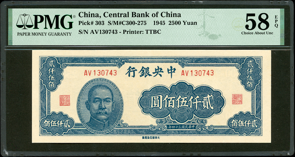 紙鈔分類 中國紙鈔清代~紙幣/股票/債券(8310-8323)『楊展孝』收藏~中央銀行銀元兑換券(8324-8380)民國~中央銀行紙幣(8381-8424)民國~中國銀行(8425-8448)民國~交通銀行(8449-8459)民國~中國農民銀行(8460-8462)民國~各省銀行券(8463-8491)民國~軍用鈔票(8492-8504)民國~地方券/錢莊票(8505-8510)民國~偽政權紙幣(8511-8519)民國金融票證~債券/股票(8520-8543)臺灣銀行~日治時期(8544-8552)臺灣銀行~老台幣(8553-8577)臺灣銀行~新台幣(8578-8679)臺灣銀行~限金門/限馬祖通用(8680-8694)臺灣銀行~限大陳島通用(8695-8696)臺灣/中央銀行~趣味號(8697-8706)中央銀行~三連鈔(8707-8709)臺灣各式金融票證(8710-8715)日本『山崎 修之亮』收藏~中國及外國紙幣(8716-8738)新中國紙幣解放區時期紙幣/債券(8739-8740)中國人民銀行~各版人民幣/外匯券/金融票證(8741-8759)世界各國紙幣日本紙幣(8760-8773)世界各國紙幣(A~Z)(8774-8783) 中國紙鈔 ↳清代~紙幣/股票/債券(8310-8323) ↳『楊展孝』收藏~中央銀行銀元兑換券(8324-8380) ↳民國~中央銀行紙幣(8381-8424) ↳民國~中國銀行(8425-8448) ↳民國~交通銀行(8449-8459) ↳民國~中國農民銀行(8460-8462) ↳民國~各省銀行券(8463-8491) ↳民國~軍用鈔票(8492-8504) ↳民國~地方券/錢莊票(8505-8510) ↳民國~偽政權紙幣(8511-8519) ↳民國金融票證~債券/股票(8520-8543) ↳臺灣銀行~日治時期(8544-8552) ↳臺灣銀行~老台幣(8553-8577) ↳臺灣銀行~新台幣(8578-8679) ↳臺灣銀行~限金門/限馬祖通用(8680-8694) ↳臺灣銀行~限大陳島通用(8695-8696) ↳臺灣/中央銀行~趣味號(8697-8706) ↳中央銀行~三連鈔(8707-8709) ↳臺灣各式金融票證(8710-8715) ↳日本『山崎 修之亮』收藏~中國及外國紙幣(8716-8738)新中國紙幣 ↳解放區時期紙幣/債券(8739-8740) ↳中國人民銀行~各版人民幣/外匯券/金融票證(8741-8759)世界各國紙幣 ↳日本紙幣(8760-8773) ↳世界各國紙幣(A~Z)(8774-8783) 點大圖放大展示,點小圖切換 5 中央銀行法幣大東版民國34年2500元,PMG Choice About Unc 58 EPQ(Page 52) 結標時間 2025-12-16 12:08:20 拍品編號:8386 起拍價:NT$5000 當前價:NT$5000 自動出價 直接出價 出價 系統將按出價級數,依序為您比(出)價至上限金額 提醒您:直接出價後不可將金額改低,只能改高,蟠龍無法降低您的出價,最高出價者無法取消出價 (查看出價說明) 得標說明:需按得標價另加10%佣金 當前加價幅度:NT$0元 (查看加價級數表) 回上頁 線上出價記錄 線上 0 人次,書面 0 人次 競價客戶 所在地 出價時間 出價金額 出價方式 問與答 目前尚無提問 我要提問 請先登入會員