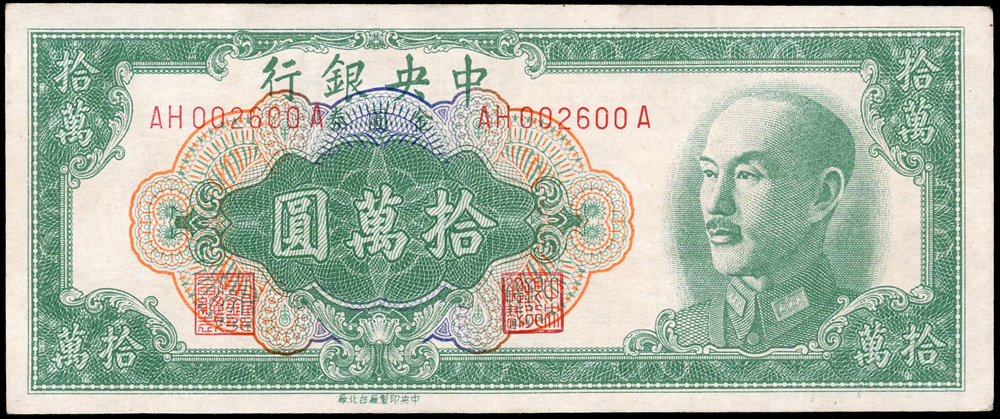 紙鈔分類 中國紙鈔清代~紙幣/股票/債券(8310-8323)『楊展孝』收藏~中央銀行銀元兑換券(8324-8380)民國~中央銀行紙幣(8381-8424)民國~中國銀行(8425-8448)民國~交通銀行(8449-8459)民國~中國農民銀行(8460-8462)民國~各省銀行券(8463-8491)民國~軍用鈔票(8492-8504)民國~地方券/錢莊票(8505-8510)民國~偽政權紙幣(8511-8519)民國金融票證~債券/股票(8520-8543)臺灣銀行~日治時期(8544-8552)臺灣銀行~老台幣(8553-8577)臺灣銀行~新台幣(8578-8679)臺灣銀行~限金門/限馬祖通用(8680-8694)臺灣銀行~限大陳島通用(8695-8696)臺灣/中央銀行~趣味號(8697-8706)中央銀行~三連鈔(8707-8709)臺灣各式金融票證(8710-8715)日本『山崎 修之亮』收藏~中國及外國紙幣(8716-8738)新中國紙幣解放區時期紙幣/債券(8739-8740)中國人民銀行~各版人民幣/外匯券/金融票證(8741-8759)世界各國紙幣日本紙幣(8760-8773)世界各國紙幣(A~Z)(8774-8783) 中國紙鈔 ↳清代~紙幣/股票/債券(8310-8323) ↳『楊展孝』收藏~中央銀行銀元兑換券(8324-8380) ↳民國~中央銀行紙幣(8381-8424) ↳民國~中國銀行(8425-8448) ↳民國~交通銀行(8449-8459) ↳民國~中國農民銀行(8460-8462) ↳民國~各省銀行券(8463-8491) ↳民國~軍用鈔票(8492-8504) ↳民國~地方券/錢莊票(8505-8510) ↳民國~偽政權紙幣(8511-8519) ↳民國金融票證~債券/股票(8520-8543) ↳臺灣銀行~日治時期(8544-8552) ↳臺灣銀行~老台幣(8553-8577) ↳臺灣銀行~新台幣(8578-8679) ↳臺灣銀行~限金門/限馬祖通用(8680-8694) ↳臺灣銀行~限大陳島通用(8695-8696) ↳臺灣/中央銀行~趣味號(8697-8706) ↳中央銀行~三連鈔(8707-8709) ↳臺灣各式金融票證(8710-8715) ↳日本『山崎 修之亮』收藏~中國及外國紙幣(8716-8738)新中國紙幣 ↳解放區時期紙幣/債券(8739-8740) ↳中國人民銀行~各版人民幣/外匯券/金融票證(8741-8759)世界各國紙幣 ↳日本紙幣(8760-8773) ↳世界各國紙幣(A~Z)(8774-8783) 點大圖放大展示,點小圖切換 9 中央銀行金圓券台北廠1949年拾萬圓,珍稀,輕中折,90新(Page 54) 結標時間 2025-12-16 12:17:00 拍品編號:8412 起拍價:NT$55000 當前價:NT$55000 自動出價 直接出價 出價 系統將按出價級數,依序為您比(出)價至上限金額 提醒您:直接出價後不可將金額改低,只能改高,蟠龍無法降低您的出價,最高出價者無法取消出價 (查看出價說明) 得標說明:需按得標價另加10%佣金 當前加價幅度:NT$0元 (查看加價級數表) 回上頁 線上出價記錄 線上 0 人次,書面 0 人次 競價客戶 所在地 出價時間 出價金額 出價方式 問與答 目前尚無提問 我要提問 請先登入會員