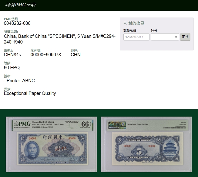 紙鈔分類 中國紙鈔清代~紙幣/股票/債券(8310-8323)『楊展孝』收藏~中央銀行銀元兑換券(8324-8380)民國~中央銀行紙幣(8381-8424)民國~中國銀行(8425-8448)民國~交通銀行(8449-8459)民國~中國農民銀行(8460-8462)民國~各省銀行券(8463-8491)民國~軍用鈔票(8492-8504)民國~地方券/錢莊票(8505-8510)民國~偽政權紙幣(8511-8519)民國金融票證~債券/股票(8520-8543)臺灣銀行~日治時期(8544-8552)臺灣銀行~老台幣(8553-8577)臺灣銀行~新台幣(8578-8679)臺灣銀行~限金門/限馬祖通用(8680-8694)臺灣銀行~限大陳島通用(8695-8696)臺灣/中央銀行~趣味號(8697-8706)中央銀行~三連鈔(8707-8709)臺灣各式金融票證(8710-8715)日本『山崎 修之亮』收藏~中國及外國紙幣(8716-8738)新中國紙幣解放區時期紙幣/債券(8739-8740)中國人民銀行~各版人民幣/外匯券/金融票證(8741-8759)世界各國紙幣日本紙幣(8760-8773)世界各國紙幣(A~Z)(8774-8783) 中國紙鈔 ↳清代~紙幣/股票/債券(8310-8323) ↳『楊展孝』收藏~中央銀行銀元兑換券(8324-8380) ↳民國~中央銀行紙幣(8381-8424) ↳民國~中國銀行(8425-8448) ↳民國~交通銀行(8449-8459) ↳民國~中國農民銀行(8460-8462) ↳民國~各省銀行券(8463-8491) ↳民國~軍用鈔票(8492-8504) ↳民國~地方券/錢莊票(8505-8510) ↳民國~偽政權紙幣(8511-8519) ↳民國金融票證~債券/股票(8520-8543) ↳臺灣銀行~日治時期(8544-8552) ↳臺灣銀行~老台幣(8553-8577) ↳臺灣銀行~新台幣(8578-8679) ↳臺灣銀行~限金門/限馬祖通用(8680-8694) ↳臺灣銀行~限大陳島通用(8695-8696) ↳臺灣/中央銀行~趣味號(8697-8706) ↳中央銀行~三連鈔(8707-8709) ↳臺灣各式金融票證(8710-8715) ↳日本『山崎 修之亮』收藏~中國及外國紙幣(8716-8738)新中國紙幣 ↳解放區時期紙幣/債券(8739-8740) ↳中國人民銀行~各版人民幣/外匯券/金融票證(8741-8759)世界各國紙幣 ↳日本紙幣(8760-8773) ↳世界各國紙幣(A~Z)(8774-8783) 點大圖放大展示,點小圖切換 4 樣票:中國銀行美鈔版民國29年5元,PMG Gem Uncirculated 66 EPQ(Page 56) 結標時間 2025-12-16 12:27:20 拍品編號:8443 起拍價:NT$10000 當前價:NT$10000 自動出價 直接出價 出價 系統將按出價級數,依序為您比(出)價至上限金額 提醒您:直接出價後不可將金額改低,只能改高,蟠龍無法降低您的出價,最高出價者無法取消出價 (查看出價說明) 得標說明:需按得標價另加10%佣金 當前加價幅度:NT$0元 (查看加價級數表) 回上頁 線上出價記錄 線上 0 人次,書面 0 人次 競價客戶 所在地 出價時間 出價金額 出價方式 問與答 目前尚無提問 我要提問 請先登入會員