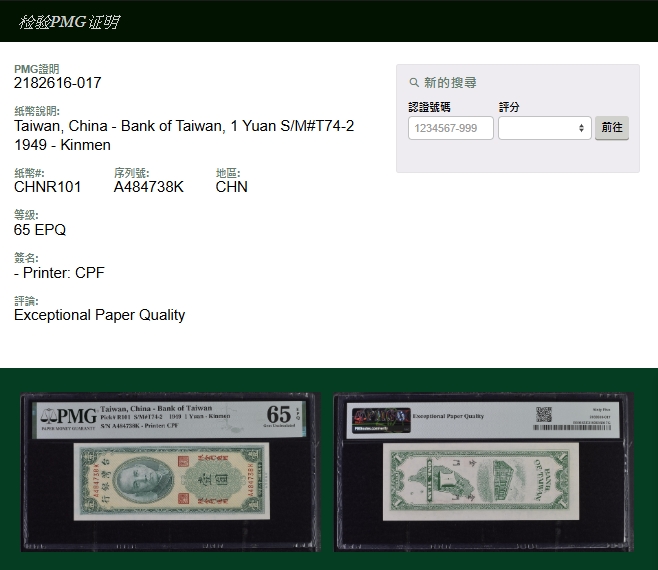 紙鈔分類 中國紙鈔清代~紙幣/股票/債券(8310-8323)『楊展孝』收藏~中央銀行銀元兑換券(8324-8380)民國~中央銀行紙幣(8381-8424)民國~中國銀行(8425-8448)民國~交通銀行(8449-8459)民國~中國農民銀行(8460-8462)民國~各省銀行券(8463-8491)民國~軍用鈔票(8492-8504)民國~地方券/錢莊票(8505-8510)民國~偽政權紙幣(8511-8519)民國金融票證~債券/股票(8520-8543)臺灣銀行~日治時期(8544-8552)臺灣銀行~老台幣(8553-8577)臺灣銀行~新台幣(8578-8679)臺灣銀行~限金門/限馬祖通用(8680-8694)臺灣銀行~限大陳島通用(8695-8696)臺灣/中央銀行~趣味號(8697-8706)中央銀行~三連鈔(8707-8709)臺灣各式金融票證(8710-8715)日本『山崎 修之亮』收藏~中國及外國紙幣(8716-8738)新中國紙幣解放區時期紙幣/債券(8739-8740)中國人民銀行~各版人民幣/外匯券/金融票證(8741-8759)世界各國紙幣日本紙幣(8760-8773)世界各國紙幣(A~Z)(8774-8783) 中國紙鈔 ↳清代~紙幣/股票/債券(8310-8323) ↳『楊展孝』收藏~中央銀行銀元兑換券(8324-8380) ↳民國~中央銀行紙幣(8381-8424) ↳民國~中國銀行(8425-8448) ↳民國~交通銀行(8449-8459) ↳民國~中國農民銀行(8460-8462) ↳民國~各省銀行券(8463-8491) ↳民國~軍用鈔票(8492-8504) ↳民國~地方券/錢莊票(8505-8510) ↳民國~偽政權紙幣(8511-8519) ↳民國金融票證~債券/股票(8520-8543) ↳臺灣銀行~日治時期(8544-8552) ↳臺灣銀行~老台幣(8553-8577) ↳臺灣銀行~新台幣(8578-8679) ↳臺灣銀行~限金門/限馬祖通用(8680-8694) ↳臺灣銀行~限大陳島通用(8695-8696) ↳臺灣/中央銀行~趣味號(8697-8706) ↳中央銀行~三連鈔(8707-8709) ↳臺灣各式金融票證(8710-8715) ↳日本『山崎 修之亮』收藏~中國及外國紙幣(8716-8738)新中國紙幣 ↳解放區時期紙幣/債券(8739-8740) ↳中國人民銀行~各版人民幣/外匯券/金融票證(8741-8759)世界各國紙幣 ↳日本紙幣(8760-8773) ↳世界各國紙幣(A~Z)(8774-8783) 點大圖放大展示,點小圖切換 3 臺灣銀行金門民國38年1元中央廠連號二枚,AK字軌布圖水印帶平3,均評級:PMG Gem Uncirculated 65 EPQ(Page 77) 結標時間 2025-12-16 13:47:40 拍品編號:8684 起拍價:NT$2200 當前價:NT$2200 自動出價 直接出價 出價 系統將按出價級數,依序為您比(出)價至上限金額 提醒您:直接出價後不可將金額改低,只能改高,蟠龍無法降低您的出價,最高出價者無法取消出價 (查看出價說明) 得標說明:需按得標價另加10%佣金 當前加價幅度:NT$100元 (查看加價級數表) 回上頁 線上出價記錄 線上 1 人次,書面 0 人次 競價客戶 所在地 出價時間 出價金額 出價方式 w********4 (領先) 台灣 2025-11-25 15:47:08 NT$2200 自動出價 問與答 目前尚無提問 我要提問 請先登入會員