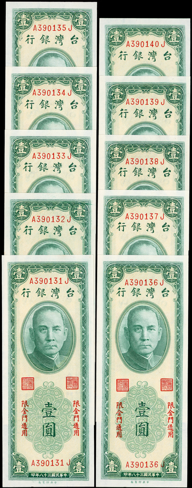 紙鈔分類 中國紙鈔清代~紙幣/股票/債券(8310-8323)『楊展孝』收藏~中央銀行銀元兑換券(8324-8380)民國~中央銀行紙幣(8381-8424)民國~中國銀行(8425-8448)民國~交通銀行(8449-8459)民國~中國農民銀行(8460-8462)民國~各省銀行券(8463-8491)民國~軍用鈔票(8492-8504)民國~地方券/錢莊票(8505-8510)民國~偽政權紙幣(8511-8519)民國金融票證~債券/股票(8520-8543)臺灣銀行~日治時期(8544-8552)臺灣銀行~老台幣(8553-8577)臺灣銀行~新台幣(8578-8679)臺灣銀行~限金門/限馬祖通用(8680-8694)臺灣銀行~限大陳島通用(8695-8696)臺灣/中央銀行~趣味號(8697-8706)中央銀行~三連鈔(8707-8709)臺灣各式金融票證(8710-8715)日本『山崎 修之亮』收藏~中國及外國紙幣(8716-8738)新中國紙幣解放區時期紙幣/債券(8739-8740)中國人民銀行~各版人民幣/外匯券/金融票證(8741-8759)世界各國紙幣日本紙幣(8760-8773)世界各國紙幣(A~Z)(8774-8783) 中國紙鈔 ↳清代~紙幣/股票/債券(8310-8323) ↳『楊展孝』收藏~中央銀行銀元兑換券(8324-8380) ↳民國~中央銀行紙幣(8381-8424) ↳民國~中國銀行(8425-8448) ↳民國~交通銀行(8449-8459) ↳民國~中國農民銀行(8460-8462) ↳民國~各省銀行券(8463-8491) ↳民國~軍用鈔票(8492-8504) ↳民國~地方券/錢莊票(8505-8510) ↳民國~偽政權紙幣(8511-8519) ↳民國金融票證~債券/股票(8520-8543) ↳臺灣銀行~日治時期(8544-8552) ↳臺灣銀行~老台幣(8553-8577) ↳臺灣銀行~新台幣(8578-8679) ↳臺灣銀行~限金門/限馬祖通用(8680-8694) ↳臺灣銀行~限大陳島通用(8695-8696) ↳臺灣/中央銀行~趣味號(8697-8706) ↳中央銀行~三連鈔(8707-8709) ↳臺灣各式金融票證(8710-8715) ↳日本『山崎 修之亮』收藏~中國及外國紙幣(8716-8738)新中國紙幣 ↳解放區時期紙幣/債券(8739-8740) ↳中國人民銀行~各版人民幣/外匯券/金融票證(8741-8759)世界各國紙幣 ↳日本紙幣(8760-8773) ↳世界各國紙幣(A~Z)(8774-8783) 點大圖放大展示,點小圖切換 1 臺灣銀行金門民國38年1元中央廠連號10枚,AJ字軌布圖水印均帶平3,全新(Page 77) 結標時間 2025-12-16 13:48:00 拍品編號:8685 起拍價:NT$4500 當前價:NT$4500 自動出價 直接出價 出價 系統將按出價級數,依序為您比(出)價至上限金額 提醒您:直接出價後不可將金額改低,只能改高,蟠龍無法降低您的出價,最高出價者無法取消出價 (查看出價說明) 得標說明:需按得標價另加10%佣金 當前加價幅度:NT$100元 (查看加價級數表) 回上頁 線上出價記錄 線上 1 人次,書面 0 人次 競價客戶 所在地 出價時間 出價金額 出價方式 w********4 (領先) 台灣 2025-11-25 15:49:16 NT$4500 自動出價 問與答 目前尚無提問 我要提問 請先登入會員