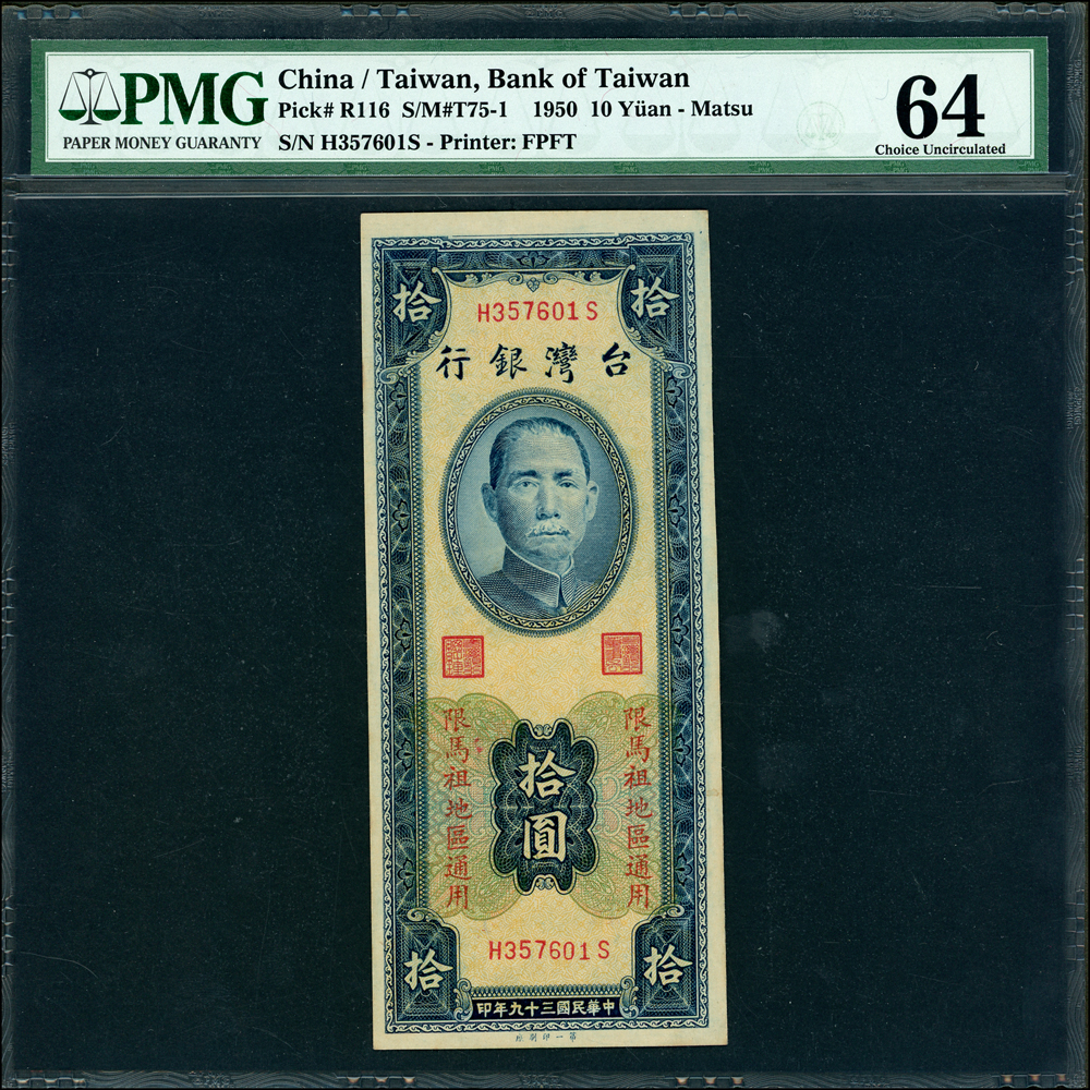 紙鈔分類 中國紙鈔清代~紙幣/股票/債券(8310-8323)『楊展孝』收藏~中央銀行銀元兑換券(8324-8380)民國~中央銀行紙幣(8381-8424)民國~中國銀行(8425-8448)民國~交通銀行(8449-8459)民國~中國農民銀行(8460-8462)民國~各省銀行券(8463-8491)民國~軍用鈔票(8492-8504)民國~地方券/錢莊票(8505-8510)民國~偽政權紙幣(8511-8519)民國金融票證~債券/股票(8520-8543)臺灣銀行~日治時期(8544-8552)臺灣銀行~老台幣(8553-8577)臺灣銀行~新台幣(8578-8679)臺灣銀行~限金門/限馬祖通用(8680-8694)臺灣銀行~限大陳島通用(8695-8696)臺灣/中央銀行~趣味號(8697-8706)中央銀行~三連鈔(8707-8709)臺灣各式金融票證(8710-8715)日本『山崎 修之亮』收藏~中國及外國紙幣(8716-8738)新中國紙幣解放區時期紙幣/債券(8739-8740)中國人民銀行~各版人民幣/外匯券/金融票證(8741-8759)世界各國紙幣日本紙幣(8760-8773)世界各國紙幣(A~Z)(8774-8783) 中國紙鈔 ↳清代~紙幣/股票/債券(8310-8323) ↳『楊展孝』收藏~中央銀行銀元兑換券(8324-8380) ↳民國~中央銀行紙幣(8381-8424) ↳民國~中國銀行(8425-8448) ↳民國~交通銀行(8449-8459) ↳民國~中國農民銀行(8460-8462) ↳民國~各省銀行券(8463-8491) ↳民國~軍用鈔票(8492-8504) ↳民國~地方券/錢莊票(8505-8510) ↳民國~偽政權紙幣(8511-8519) ↳民國金融票證~債券/股票(8520-8543) ↳臺灣銀行~日治時期(8544-8552) ↳臺灣銀行~老台幣(8553-8577) ↳臺灣銀行~新台幣(8578-8679) ↳臺灣銀行~限金門/限馬祖通用(8680-8694) ↳臺灣銀行~限大陳島通用(8695-8696) ↳臺灣/中央銀行~趣味號(8697-8706) ↳中央銀行~三連鈔(8707-8709) ↳臺灣各式金融票證(8710-8715) ↳日本『山崎 修之亮』收藏~中國及外國紙幣(8716-8738)新中國紙幣 ↳解放區時期紙幣/債券(8739-8740) ↳中國人民銀行~各版人民幣/外匯券/金融票證(8741-8759)世界各國紙幣 ↳日本紙幣(8760-8773) ↳世界各國紙幣(A~Z)(8774-8783) 點大圖放大展示,點小圖切換 13 臺灣銀行馬祖民國39年10元第一廠,HS字軌帶圓3,PMG Choice Uncirculated 64(Page 77) 結標時間 2025-12-16 13:50:40 拍品編號:8693 起拍價:NT$40000 當前價:NT$40000 自動出價 直接出價 出價 系統將按出價級數,依序為您比(出)價至上限金額 提醒您:直接出價後不可將金額改低,只能改高,蟠龍無法降低您的出價,最高出價者無法取消出價 (查看出價說明) 得標說明:需按得標價另加10%佣金 當前加價幅度:NT$0元 (查看加價級數表) 回上頁 線上出價記錄 線上 0 人次,書面 0 人次 競價客戶 所在地 出價時間 出價金額 出價方式 問與答 目前尚無提問 我要提問 請先登入會員
