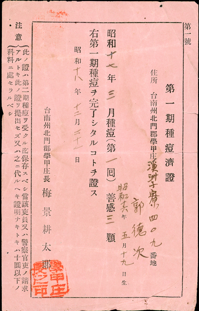 雜項與文獻分類 大清郵政 1911年以前清代~文獻(1113-1124)清代~臺灣文獻(1125-1135)印花稅票及集郵文獻印花稅票及單據(6366-6380)集郵文獻~華郵出版品(6381-6576)雜項收藏及幣鈔文獻幣鈔文獻~台灣及大陸出版品(8784-8794)雜項收藏~電話卡/紙質文獻(8795-8807)雜項收藏~國共內戰(8808-8816)雜項收藏~古籍善本(8817-8824) 大清郵政 1911年以前 ↳清代~文獻(1113-1124) ↳清代~臺灣文獻(1125-1135)印花稅票及集郵文獻 ↳印花稅票及單據(6366-6380) ↳集郵文獻~華郵出版品(6381-6576)雜項收藏及幣鈔文獻 ↳幣鈔文獻~台灣及大陸出版品(8784-8794) ↳雜項收藏~電話卡/紙質文獻(8795-8807) ↳雜項收藏~國共內戰(8808-8816) ↳雜項收藏~古籍善本(8817-8824) 點大圖放大展示,點小圖切換 1 (1943年)昭和18年台南州北門郡學甲庄單據二件:(1)第一期種痘濟證(9.5*15cm);(2)國民必勝貯蓄表(24.3*16.5cm),摺痕,80新 結標時間 2025-12-16 14:26:00 拍品編號:8799 起拍價:NT$100 當前價:NT$100 自動出價 直接出價 出價 系統將按出價級數,依序為您比(出)價至上限金額 提醒您:直接出價後不可將金額改低,只能改高,蟠龍無法降低您的出價,最高出價者無法取消出價 (查看出價說明) 得標說明:需按得標價另加10%佣金 當前加價幅度:NT$0元 (查看加價級數表) 回上頁 線上出價記錄 線上 0 人次,書面 0 人次 競價客戶 所在地 出價時間 出價金額 出價方式 問與答 目前尚無提問 我要提問 請先登入會員