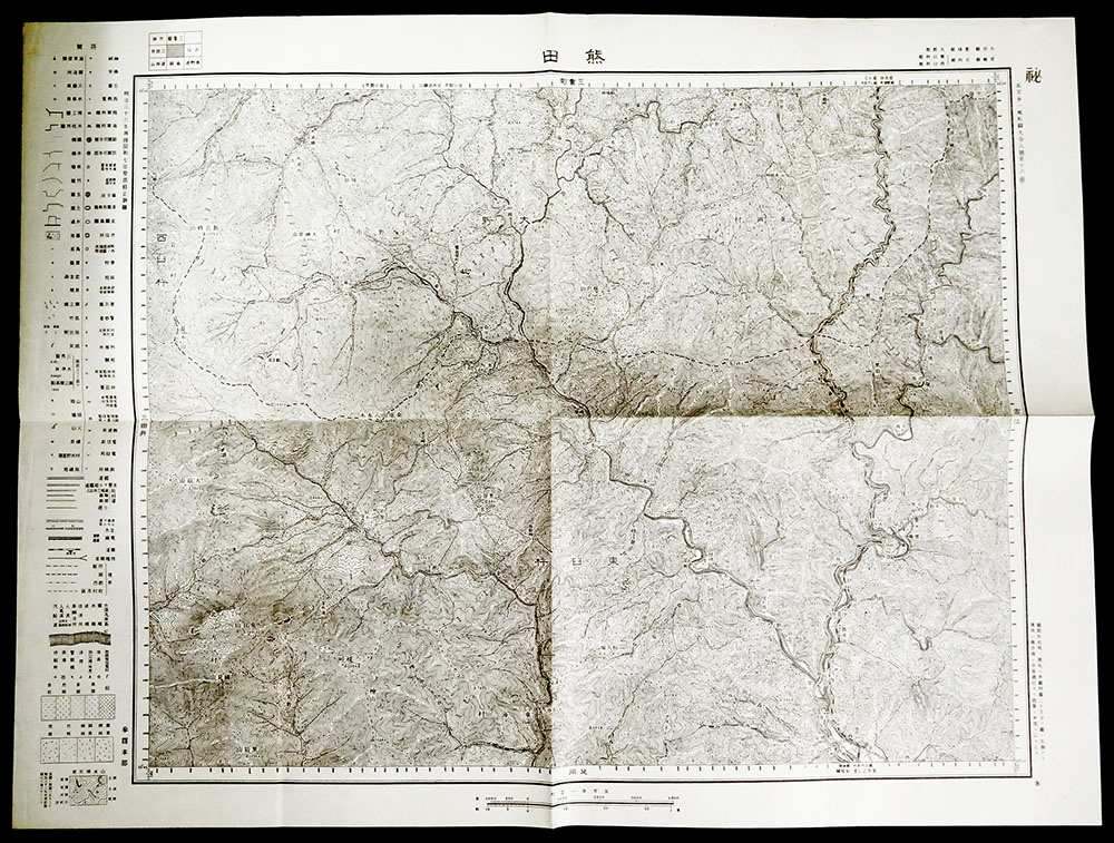 明治25年~昭和19年(1892-1944年)日本-九州各地地形圖計155張不同(58*46cm),整理整齊於《戰前版.五万分一日本總圖集》自製冊中,共4冊,陸地測量部/內務省地理調查所發行,黑白印刷,內含「秘」.「軍事極秘」等,保存佳,總重約5410g;歡迎親臨檢視或網上瀏覽